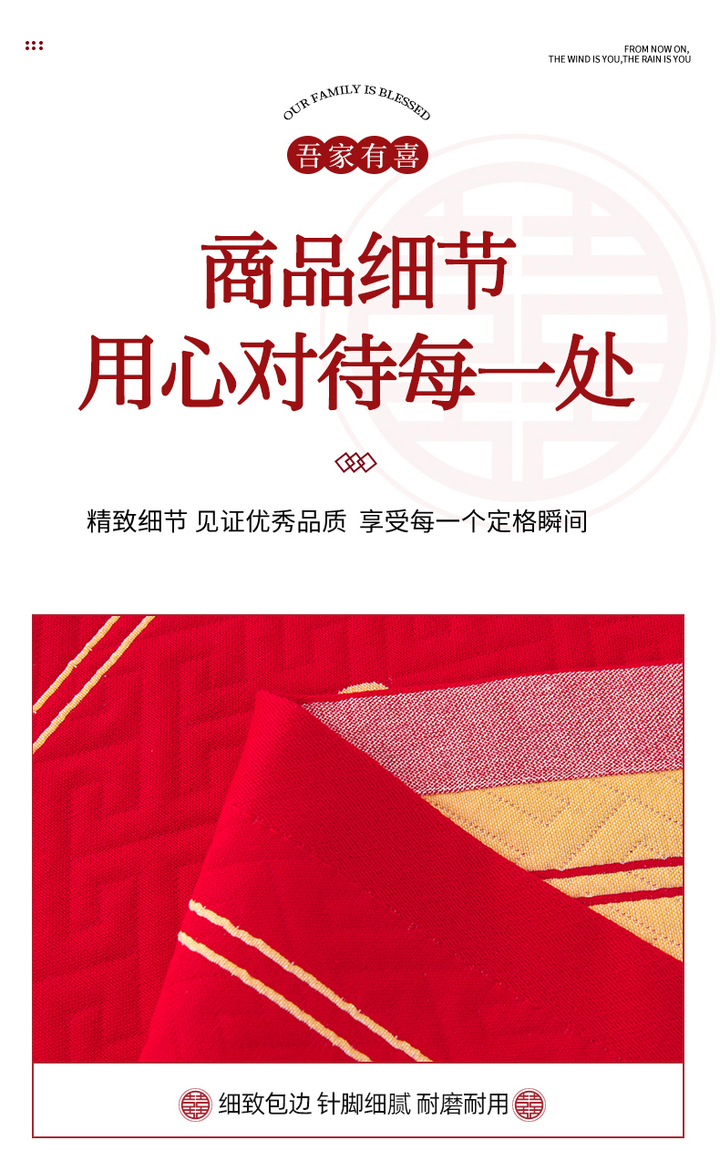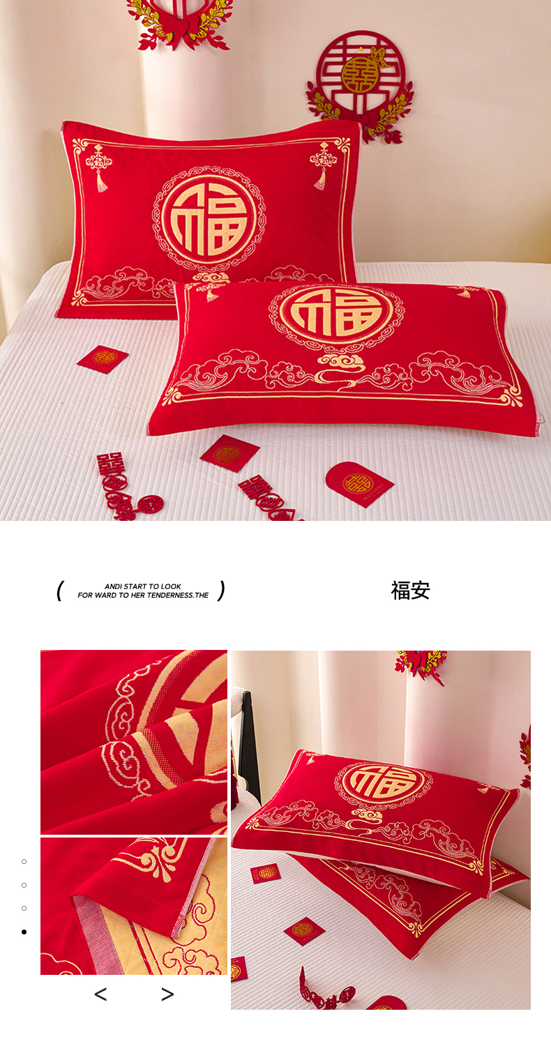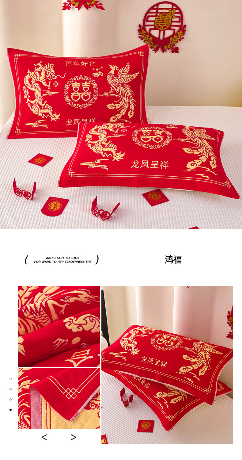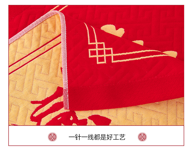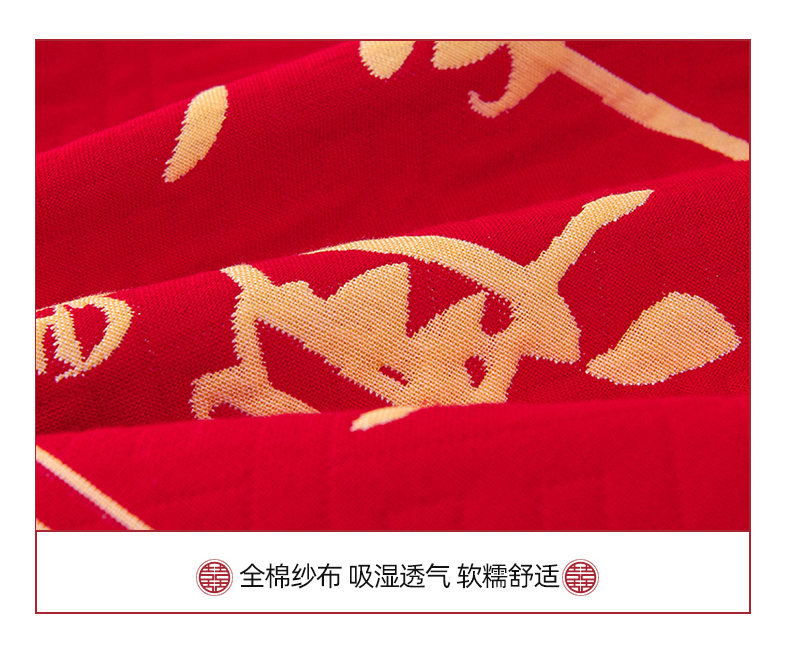 商品名称:悦然毛巾被 2025新款全棉三层纱大红枕巾 家和万事兴1