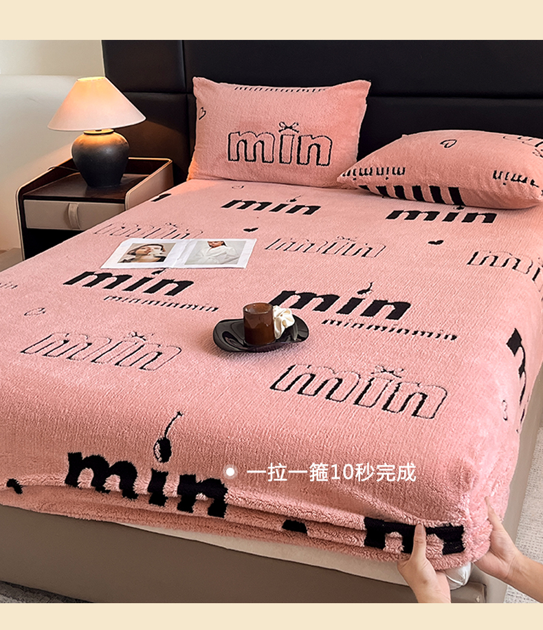 • 91家纺网 家纺一手货源 找家纺 叠派家纺 2025新款A类高克重云慕绒床笠系列(场景二拍摄)提供买家秀 云暮绒床笠-桃夭粉