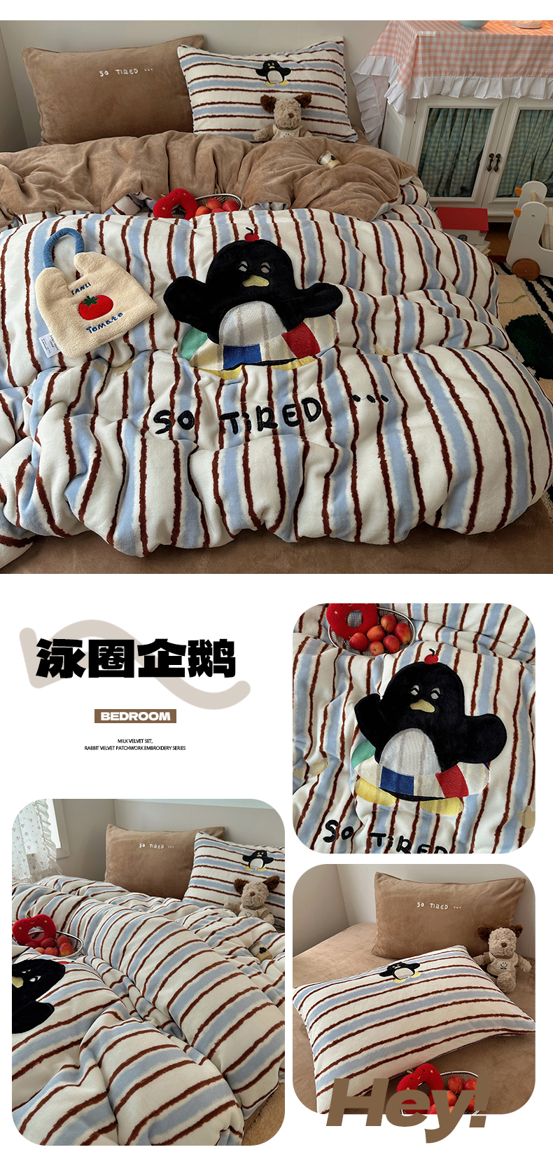 商品名称:暖生活 2025新款兔绒贴布绣牛奶绒套件四件套(会员-5) 泳圈企鹅