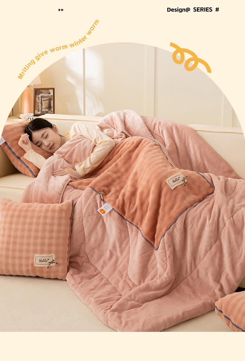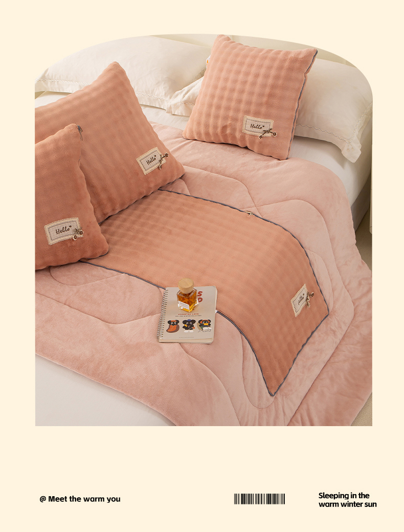 (总)多今家纺 2025新款牛奶绒贴布抱枕被子-遇见系列,遇见-淡粉,遇见-青麦绿,遇见-落霞橙,遇见-天空蓝,遇见-象牙黄,遇见-月光灰