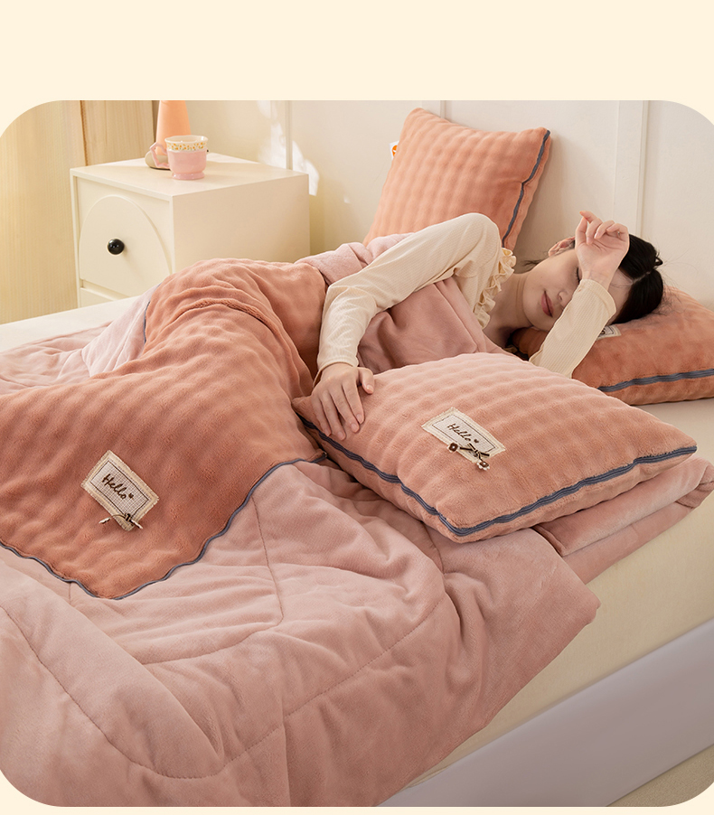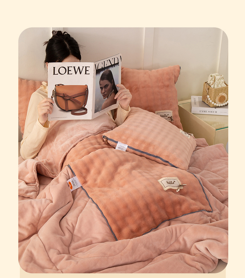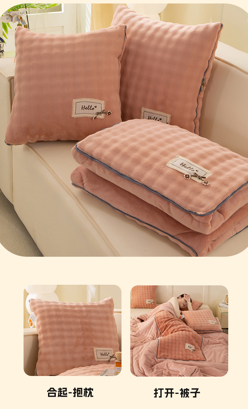 商品名称:多今家纺 2025新款牛奶绒贴布抱枕被子-遇见系列 遇见-淡粉