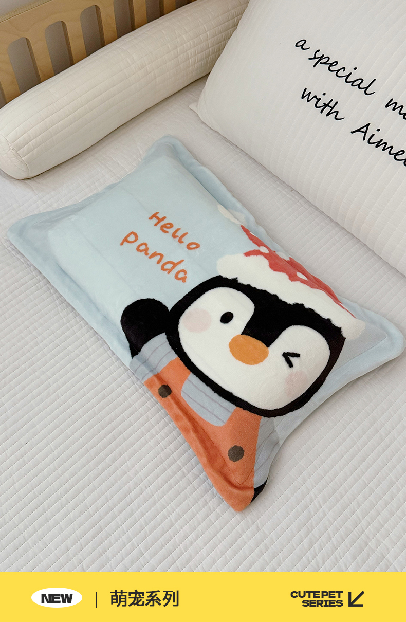 商品名称:荷马之梦 2025新款A类牛奶绒数码印花原创卡通大版儿童幼儿园单枕套枕套单件-萌宠 企鹅达达