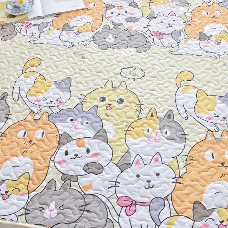商品名称:佳鸿家纺 2025新款卡通纯棉夹棉绗缝枕套冬季加厚宿舍枕套 萌猫聚会