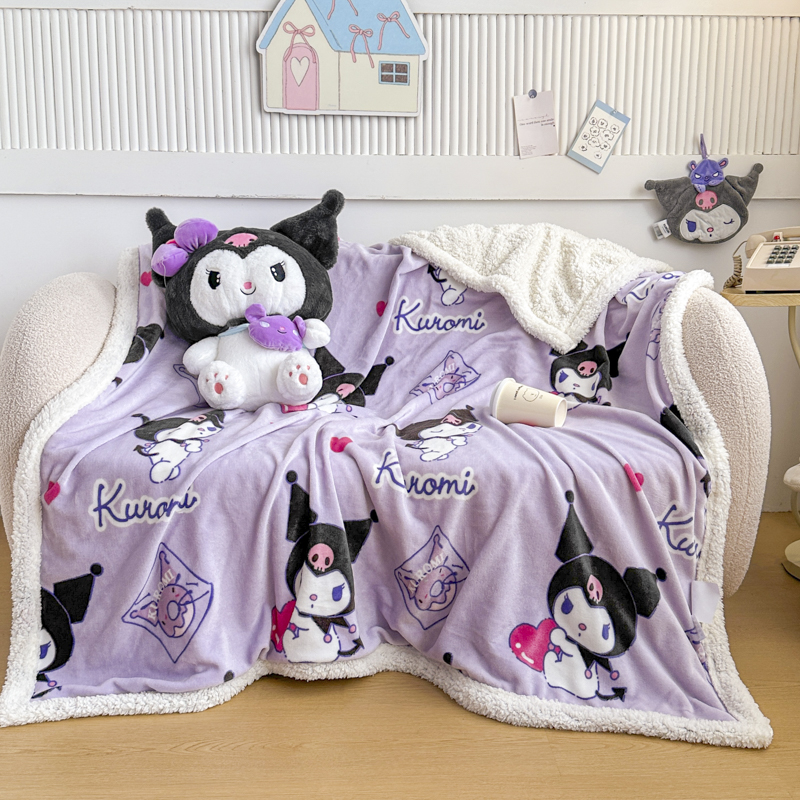 (总)花满路 2025新款亲肤舒适三丽鸥羊羔毛毯,格子布丁狗,卷卷大耳狗,泡泡库洛米,糯糯美乐蒂,暖暖玉桂狗,棉花美乐蒂,派对库洛米,乖巧kt,俏皮kt,甜蜜kt,团团布丁狗,kt伙伴