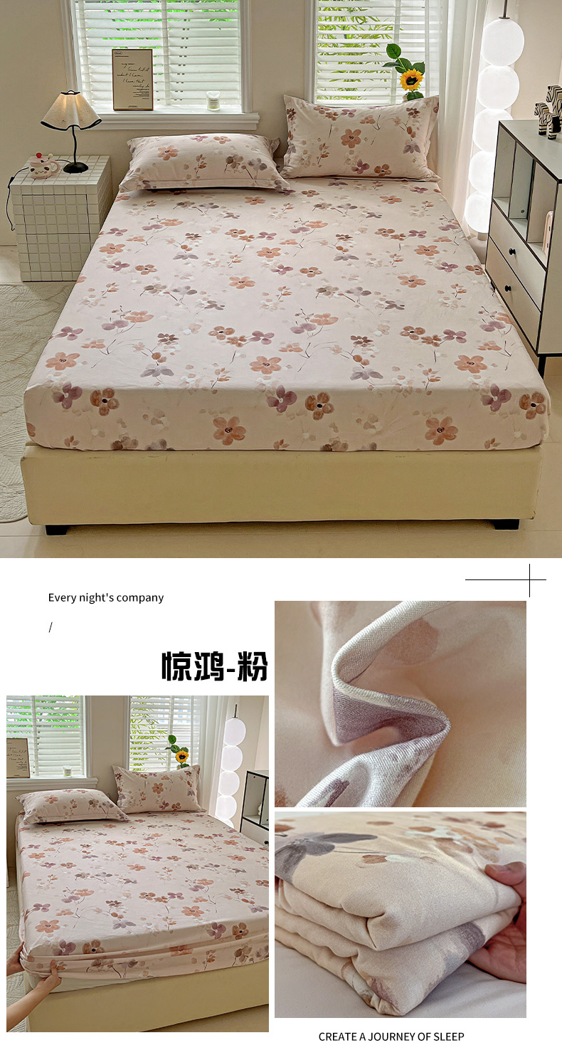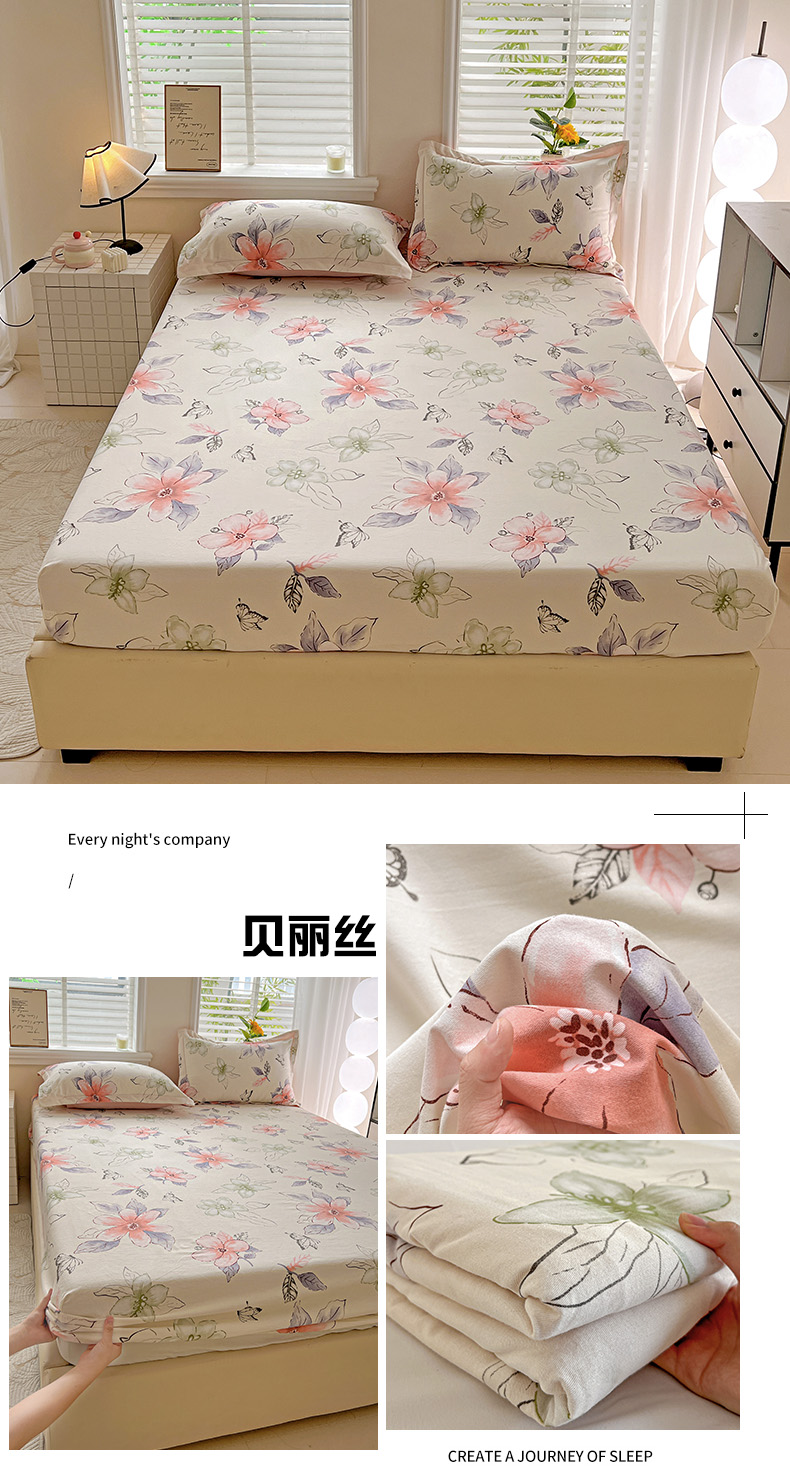 商品名称:依庭 2025新款高克重全棉纯棉磨毛印花床笠单品床笠 樱贝
