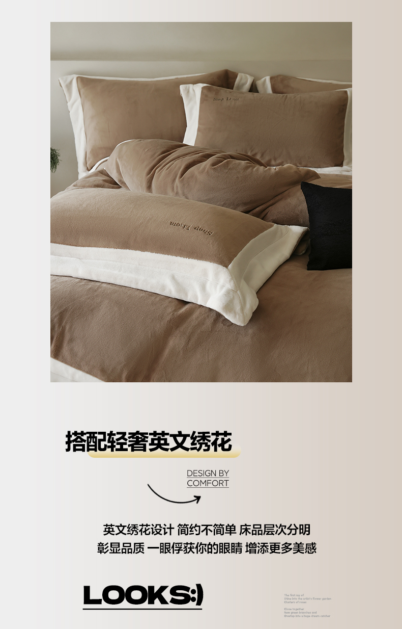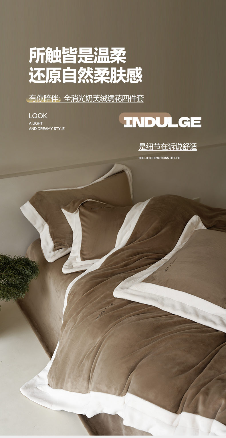 商品名称:简纯主义 2025新款270g全消光全工艺奶芙绒四件套-赫尔曼系列 【控价】:日常店铺券后价格:358/398 赫尔曼咖