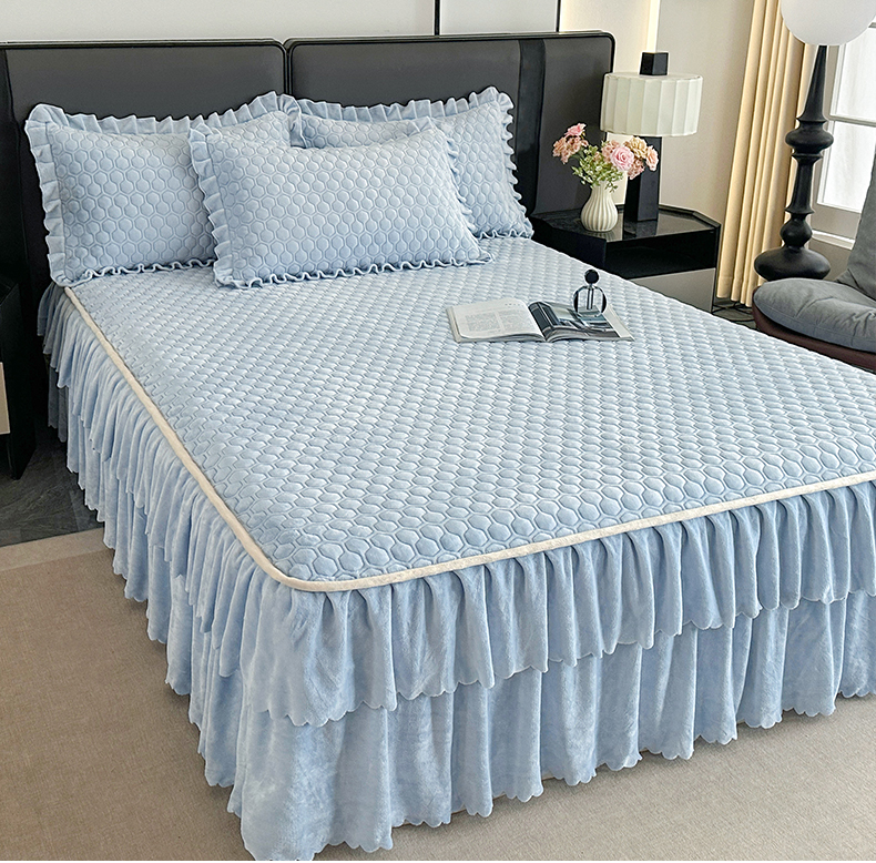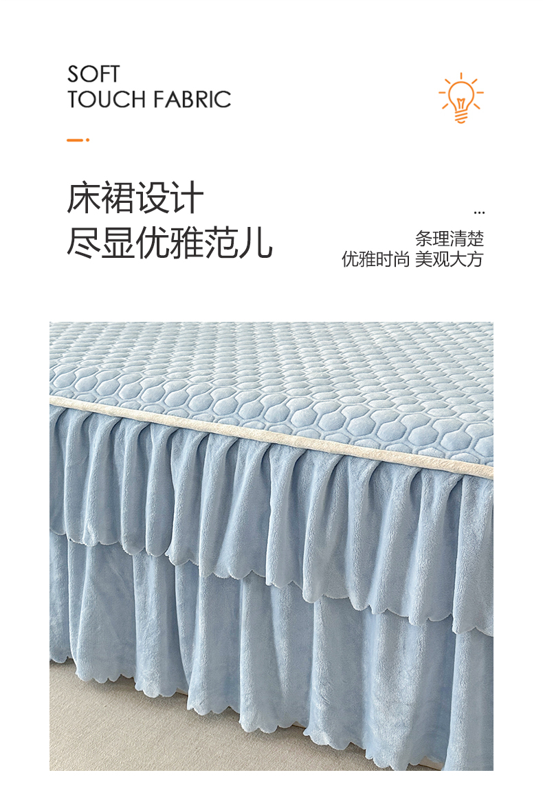 • 91家纺网 家纺一手货源 找家纺 董韵家纺 2025新款牛奶绒刺绣夹棉床裙三件套系列(控价) 绒语-浅穹蓝