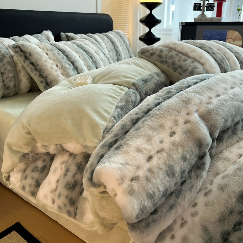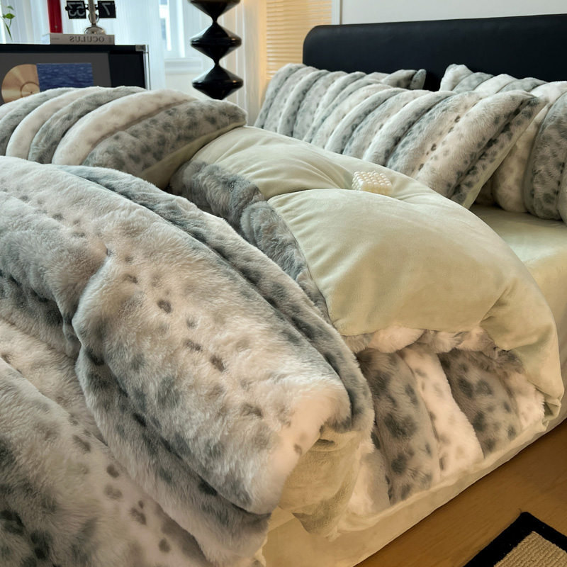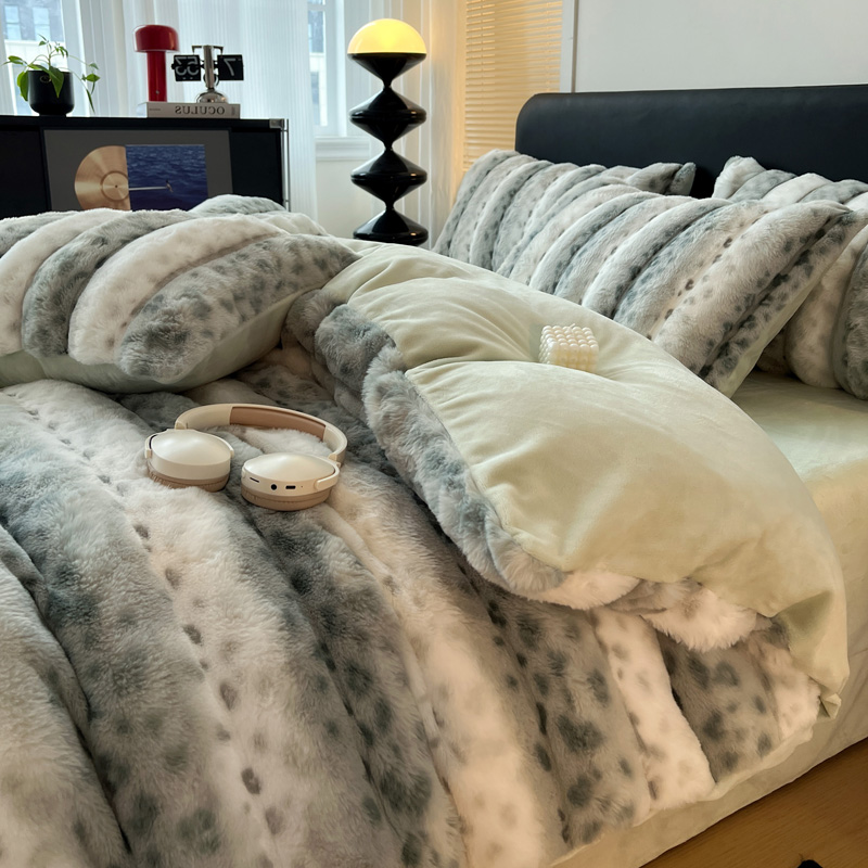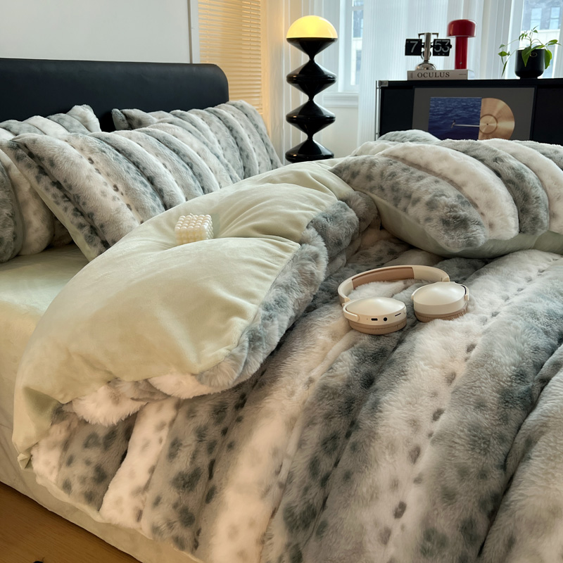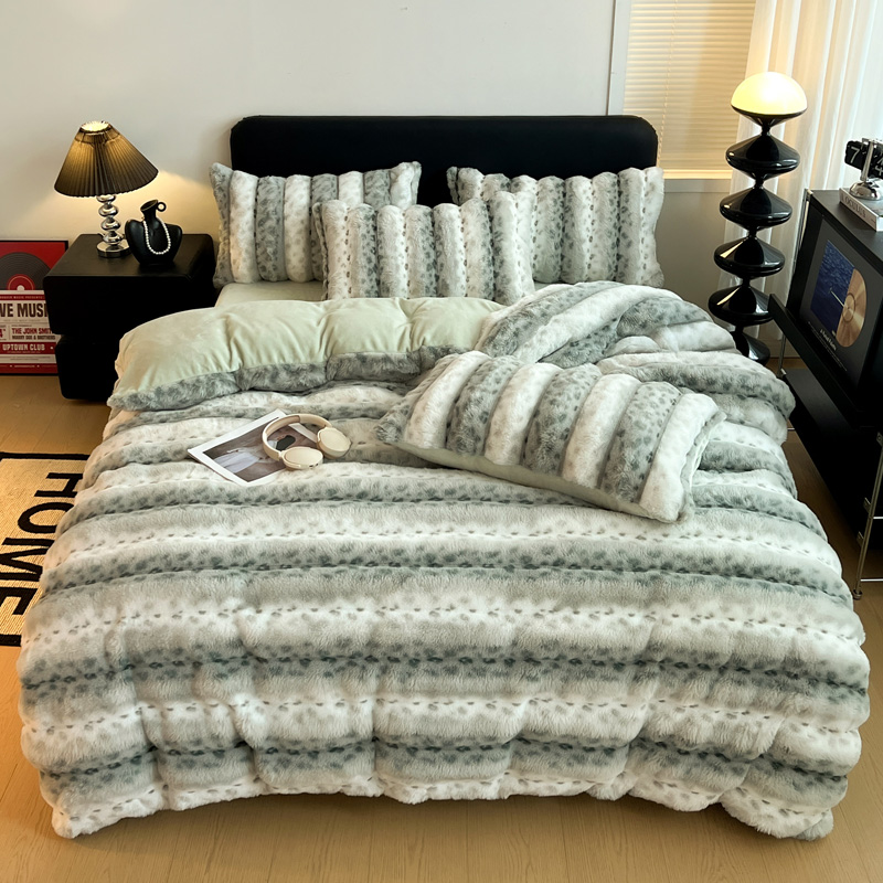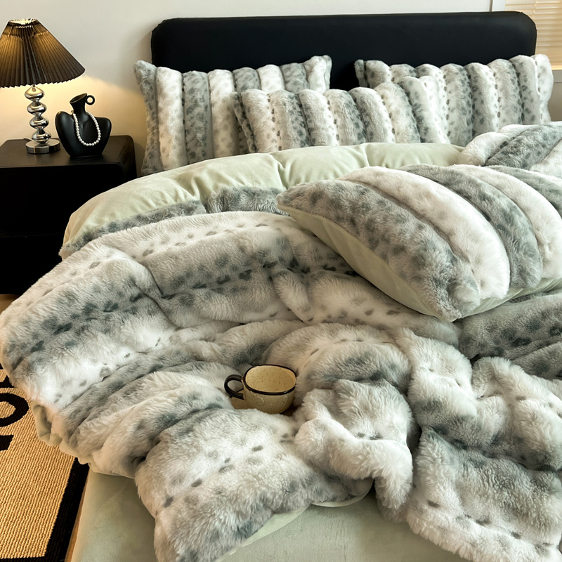 梦莱斯 2025新款轻奢高克重兔毛绒四件套 绿色