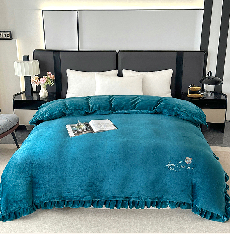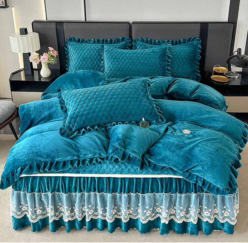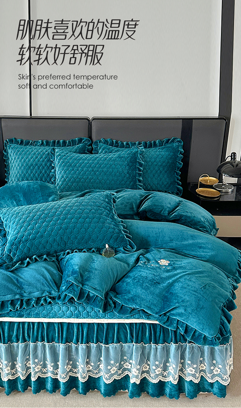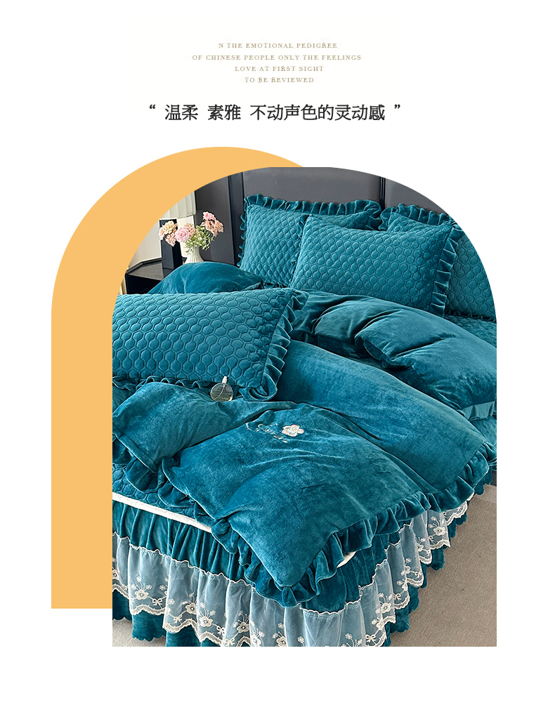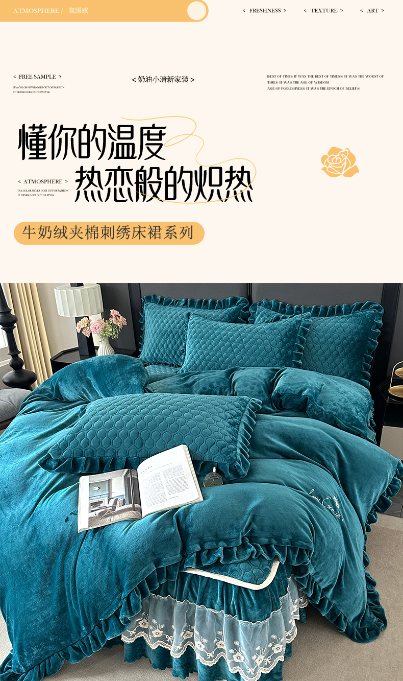 董韵家纺 2025新款牛奶绒刺绣夹棉床裙四件套系列(控价) 丝语-靛青