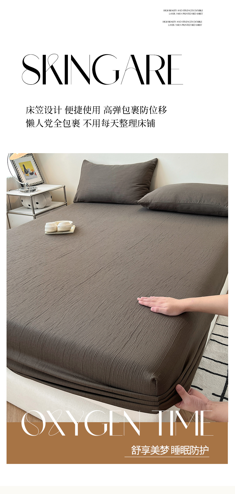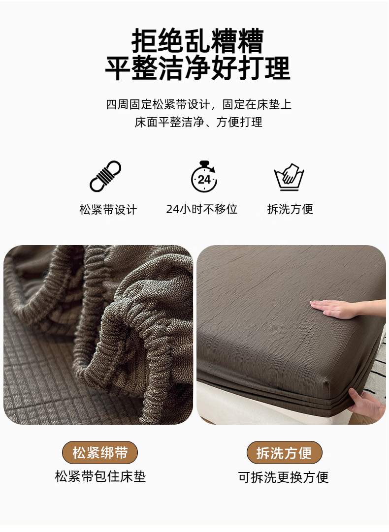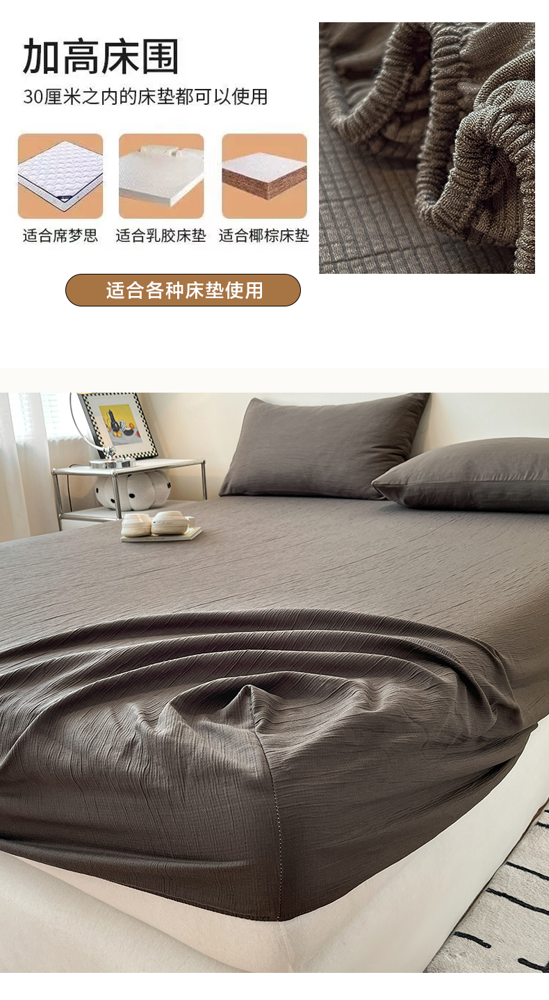 • 91家纺网 家纺一手货源 找家纺 瑞钰 2025新款透气云感三层纱床笠 深咖
