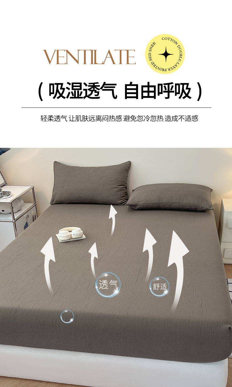 (总)瑞钰 2025新款透气云感三层纱床笠,军蓝,木槿紫,奶昔白,奶油黄,浅咖,柔幻紫,韶粉,深咖,水绿,天空蓝,烟灰