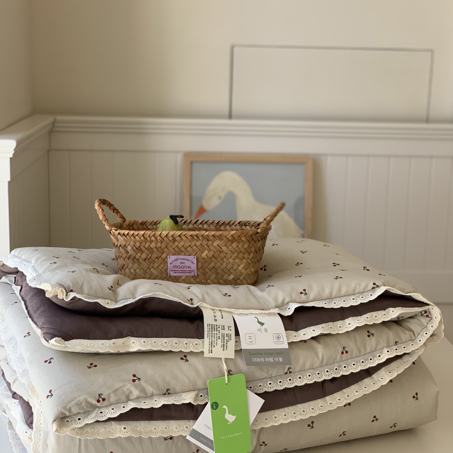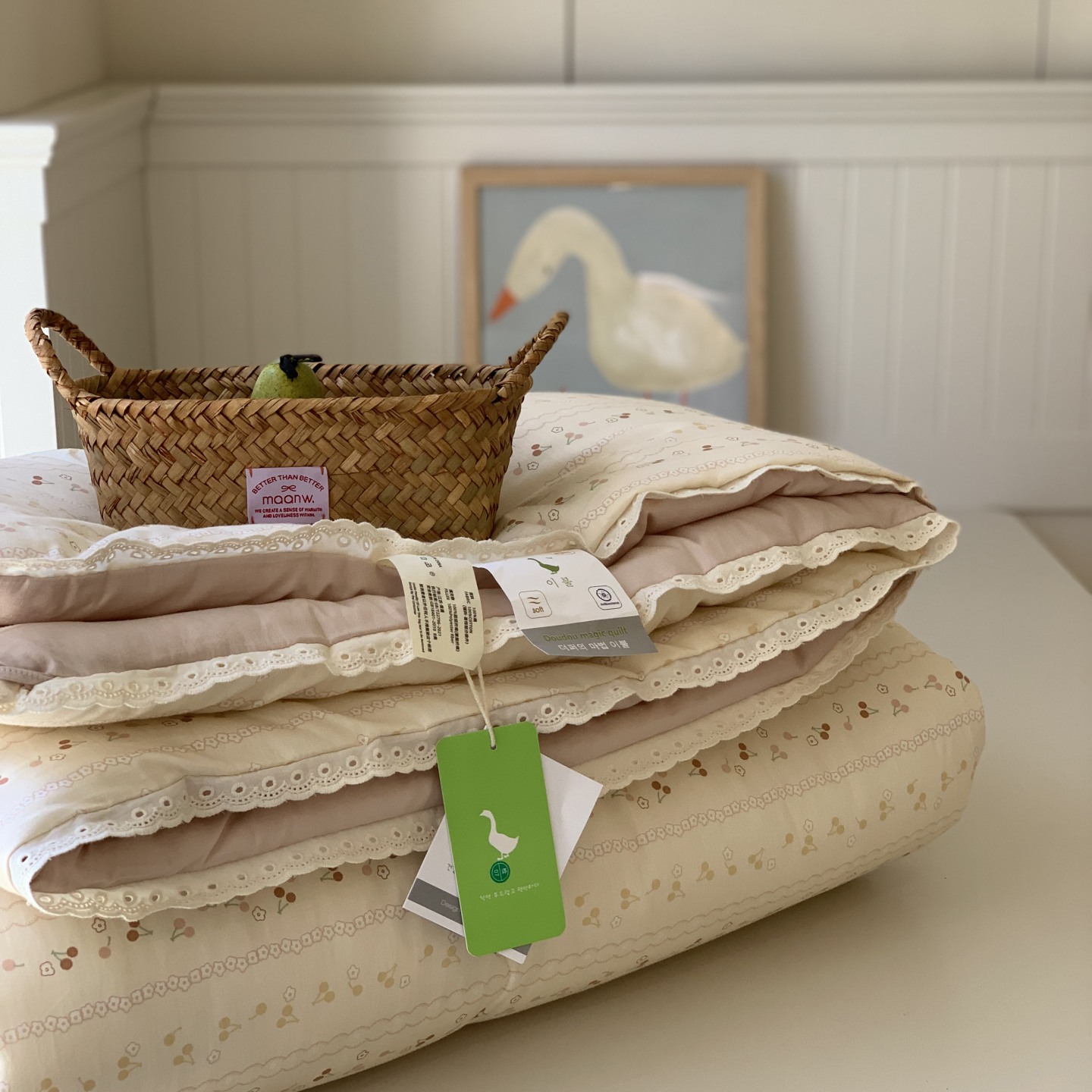 (总)汇庭 2025新款秋冬胖胖樱桃春秋被+樱桃菲菲床盖三件套,组合图下单仅供展示不可下单,粉色,绿色,米色