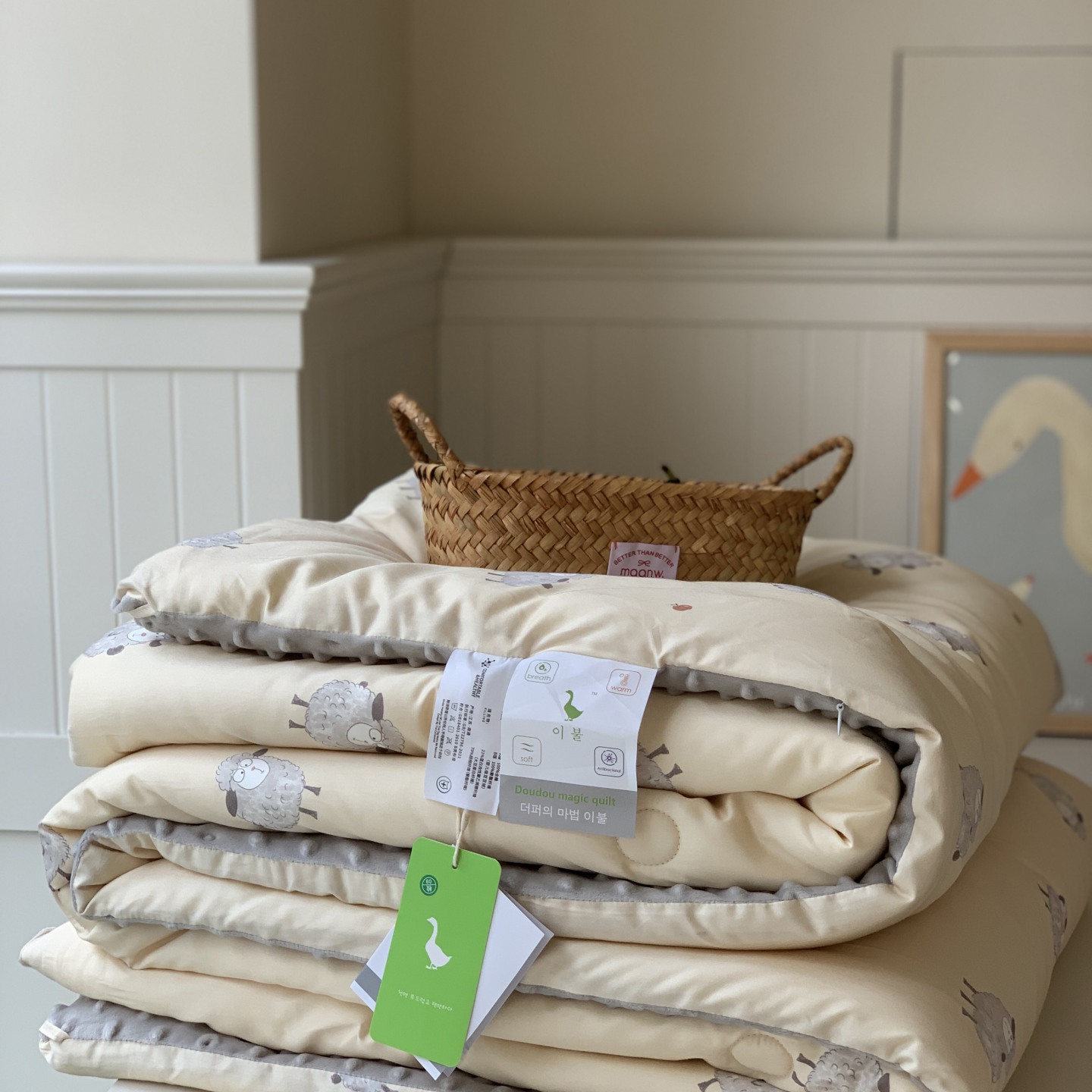 商品名称:汇庭 2025秋冬新品60s长绒棉单人豆豆冬被子被芯 肖肖羊绿
