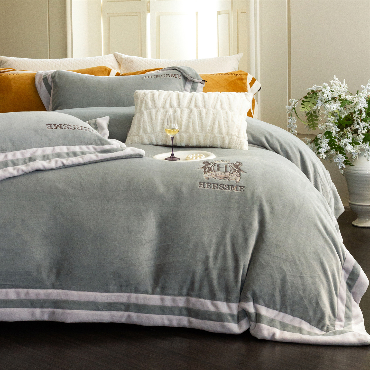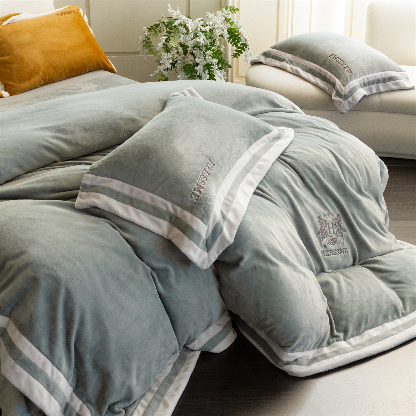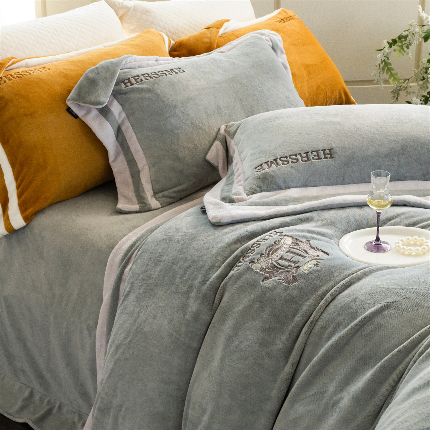 商品名称:馨蕊 2025新款秋冬轻奢煦暖绒牛奶绒四件套系列-绒巴黎 会员-10【券后控价358/378】 绒巴黎-高级灰