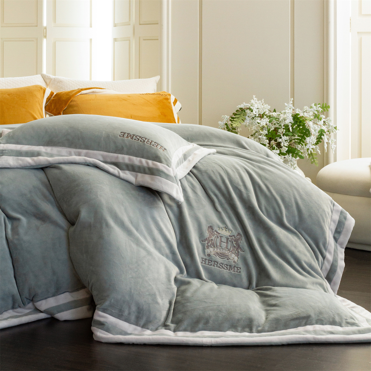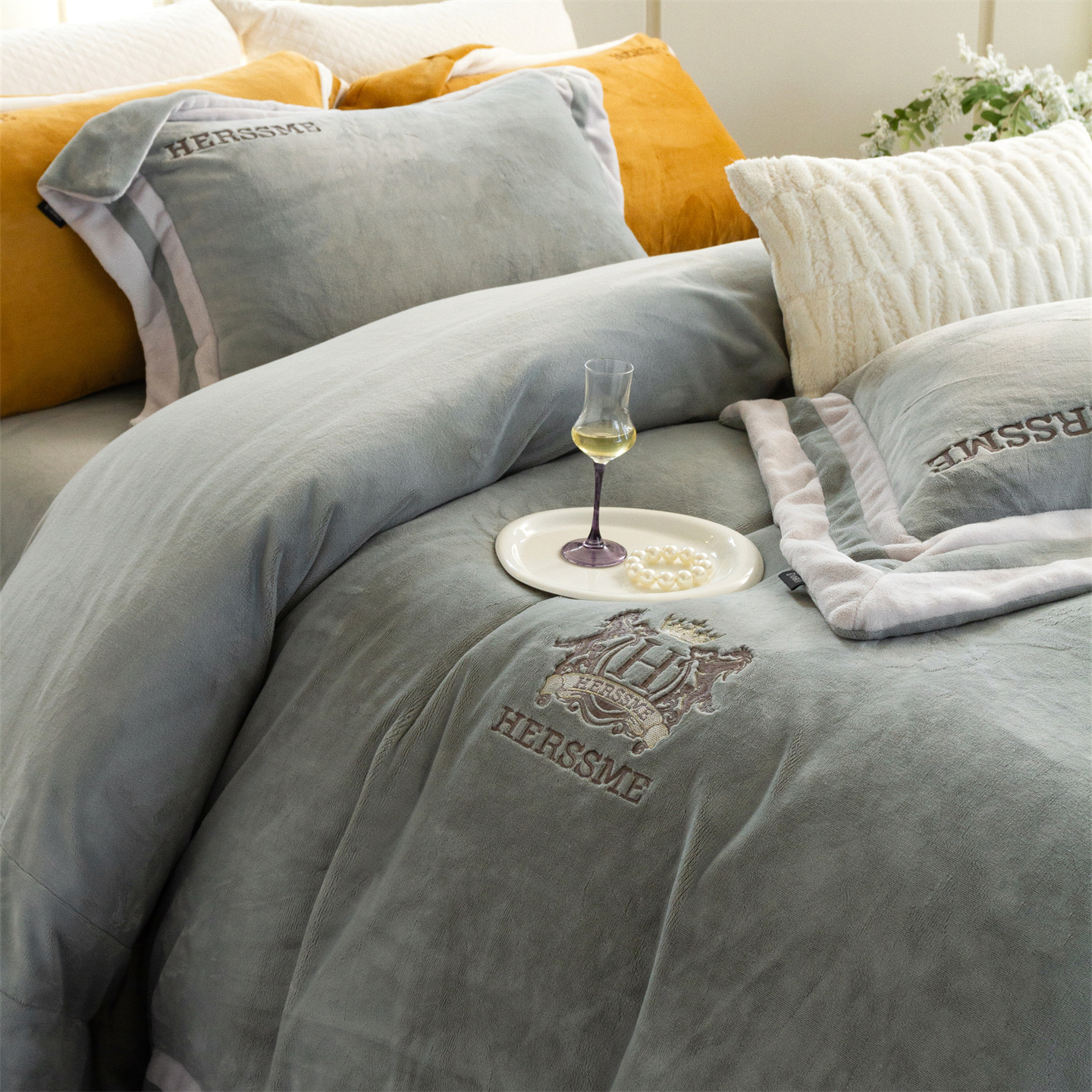 (总)馨蕊家居 2025新款意大利进口高精密刺绣拼角工艺秋冬法式高奢雪貂绒系列-绒雪芙 会员-10【券后控价358/378】,绒雪芙-奶咖,绒雪芙-蔷薇粉,绒雪芙-婉若紫,绒雪芙-月光白