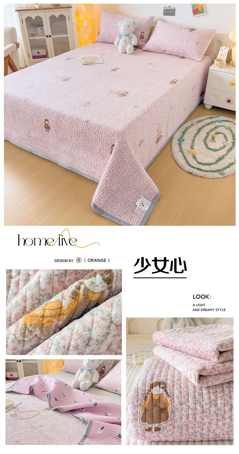 (总)棉乐町家居 2025新款高克重牛奶绒夹棉印花床盖,爱心满满,蝶恋花,薄荷玫瑰,豆蔻年华,蝴蝶粉,格调,国色天香,花丛绿,花丛紫,花开盛世,花之物语,花中精灵,快乐熊,拉菲格,玫瑰人生,梦中花,摩伊,南瓜派对,蔷薇紫,清新淡雅,少女心,生日party,太阳花,甜心熊粉,甜心熊咖,小资生活,叶语柔情,雍容华贵
