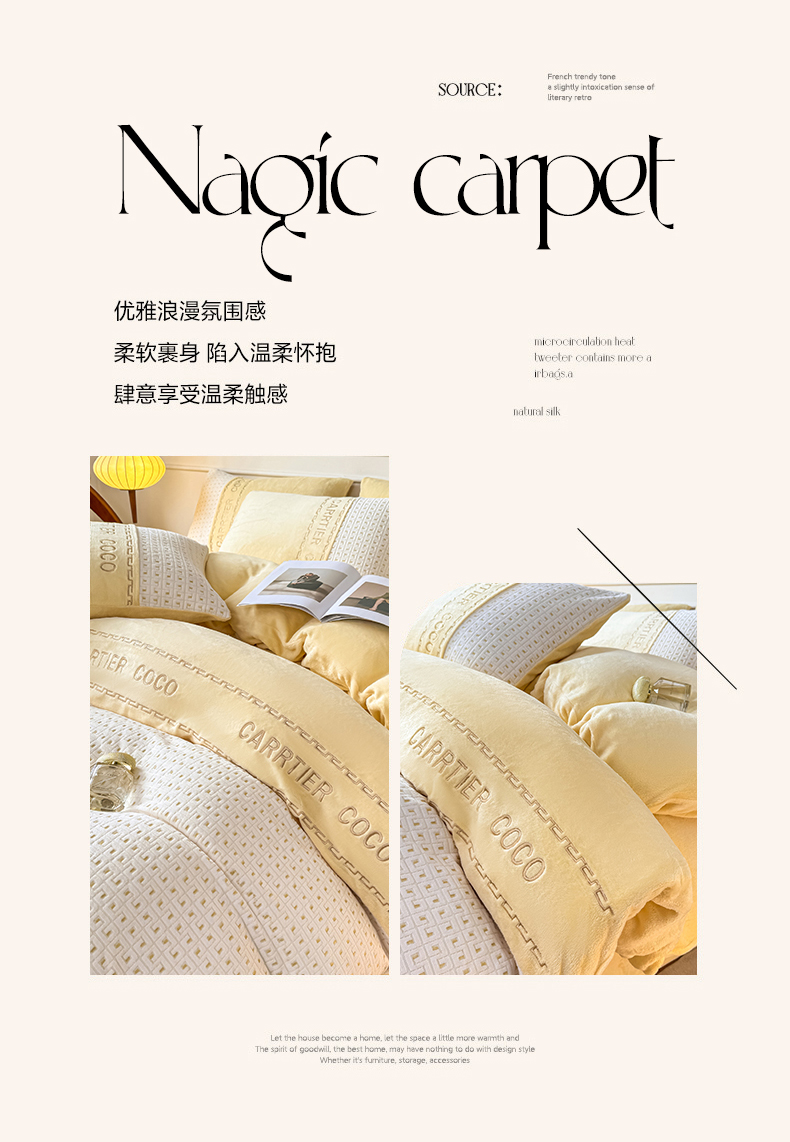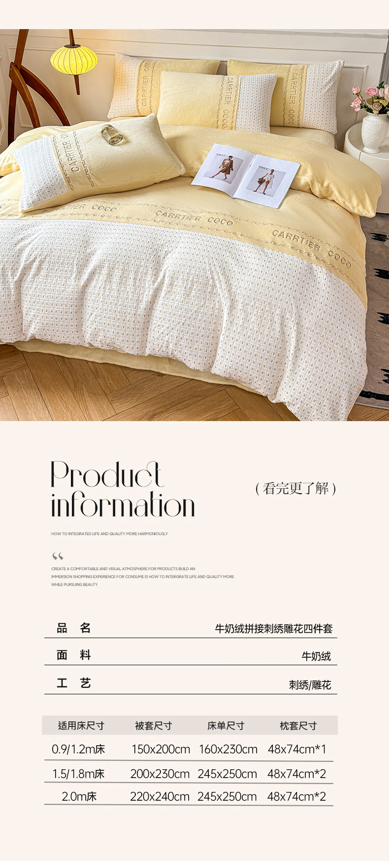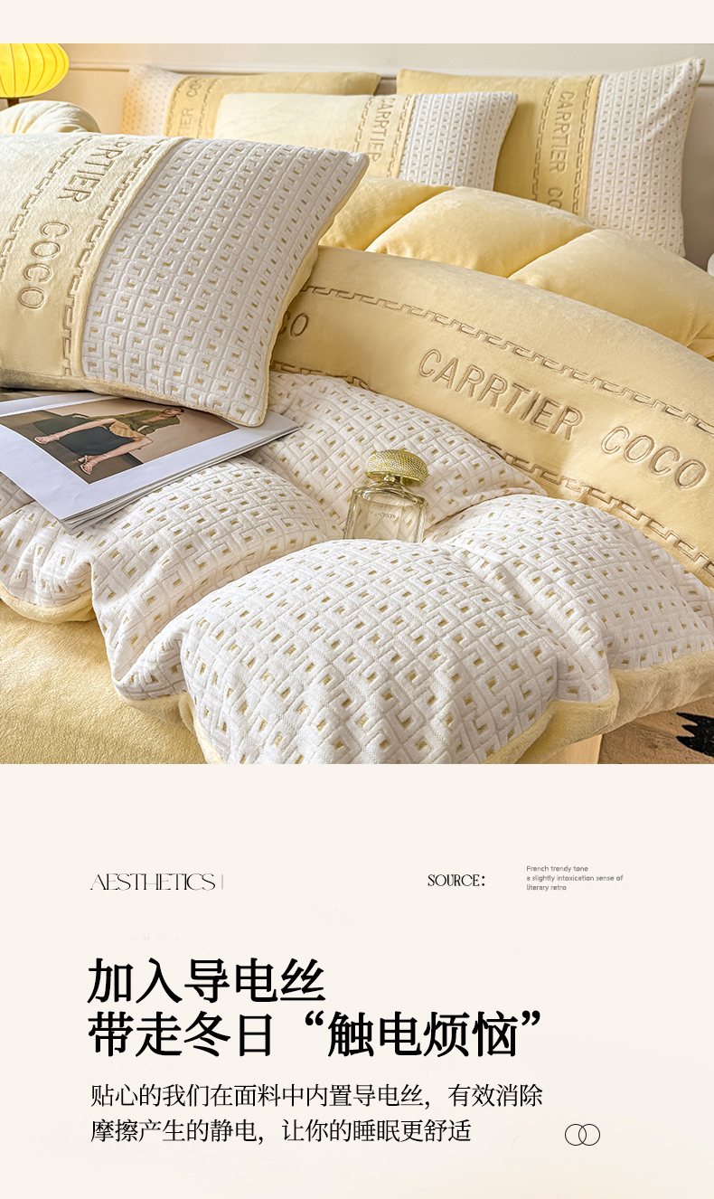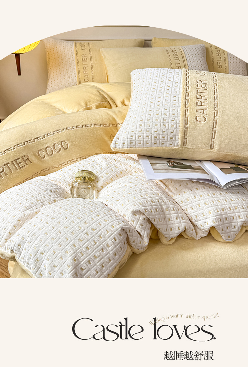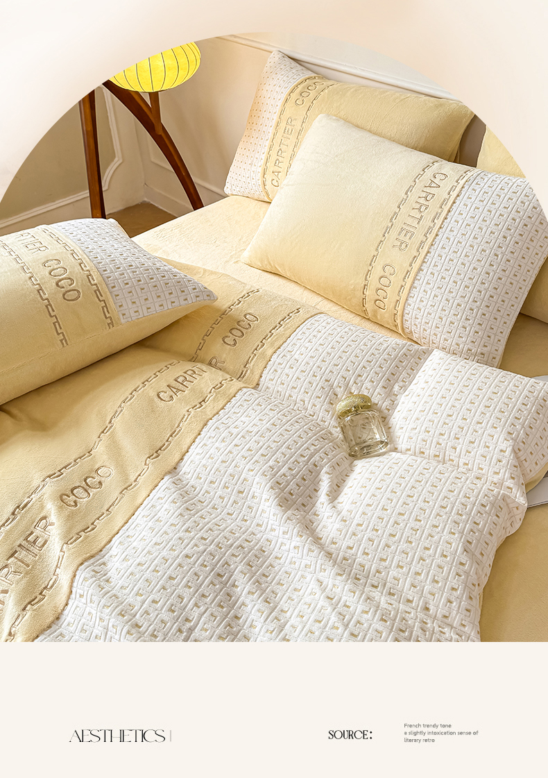 当前位置: 91家纺网 > 商品网购 > 床品套件 > 四件套 > 牛奶绒四件套 > 灰鲸 2025新款牛奶绒刺绣拼接款四件套-威廉 威廉-奶黄