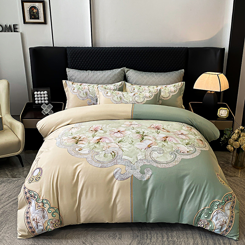 (总)大麦乐田 2025新款珍珠棉大版印花四件套,境澜-玉,若芸-紫,境澜-灰,花涧-粉,境涧-紫,芳华-紫,若芸-粉,芳华-黄,花涧-桔,梦谷-粉,梦谷-绿