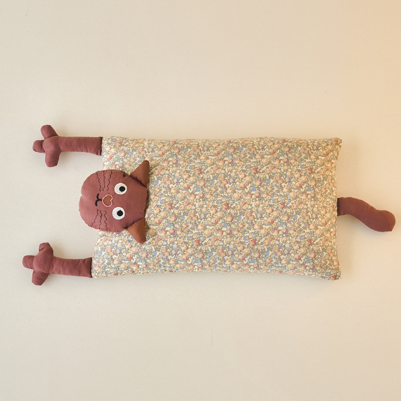 商品名称:明星枕业 2025新款荞麦枕纯棉全棉双层纱儿童可爱猫咪低枕芯单人卡通枕可拆卸枕头芯 哇塞猫-咖