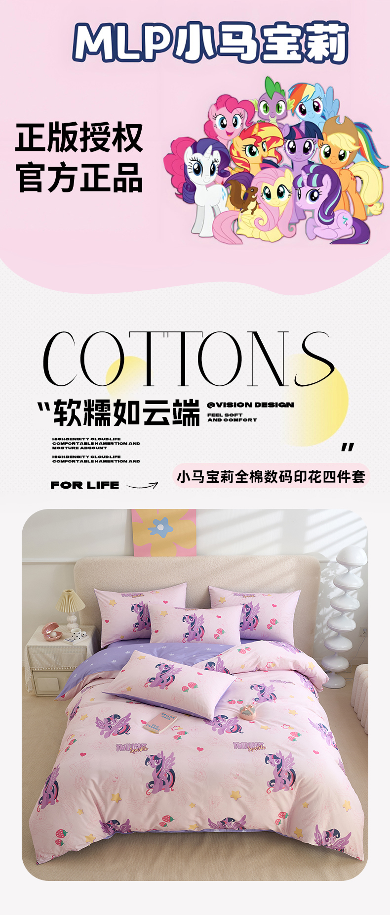 商品名称:(总)百利卡通(原迪士尼家纺) 2025新款小马宝莉全棉纯棉数码印花圆网四件套