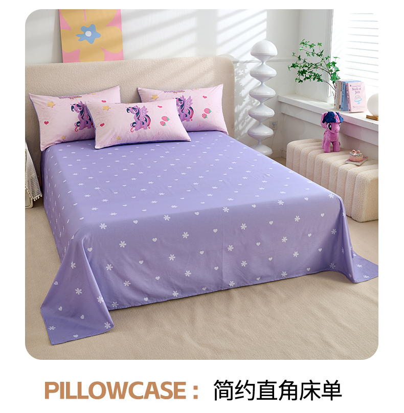 (总)百利卡通(原迪士尼家纺) 2025新款全棉圆网数码印花床笠枕套-小马宝莉,草莓紫悦L,春天紫悦L,飞翔柔柔L,格子小马L,开心碧琪L