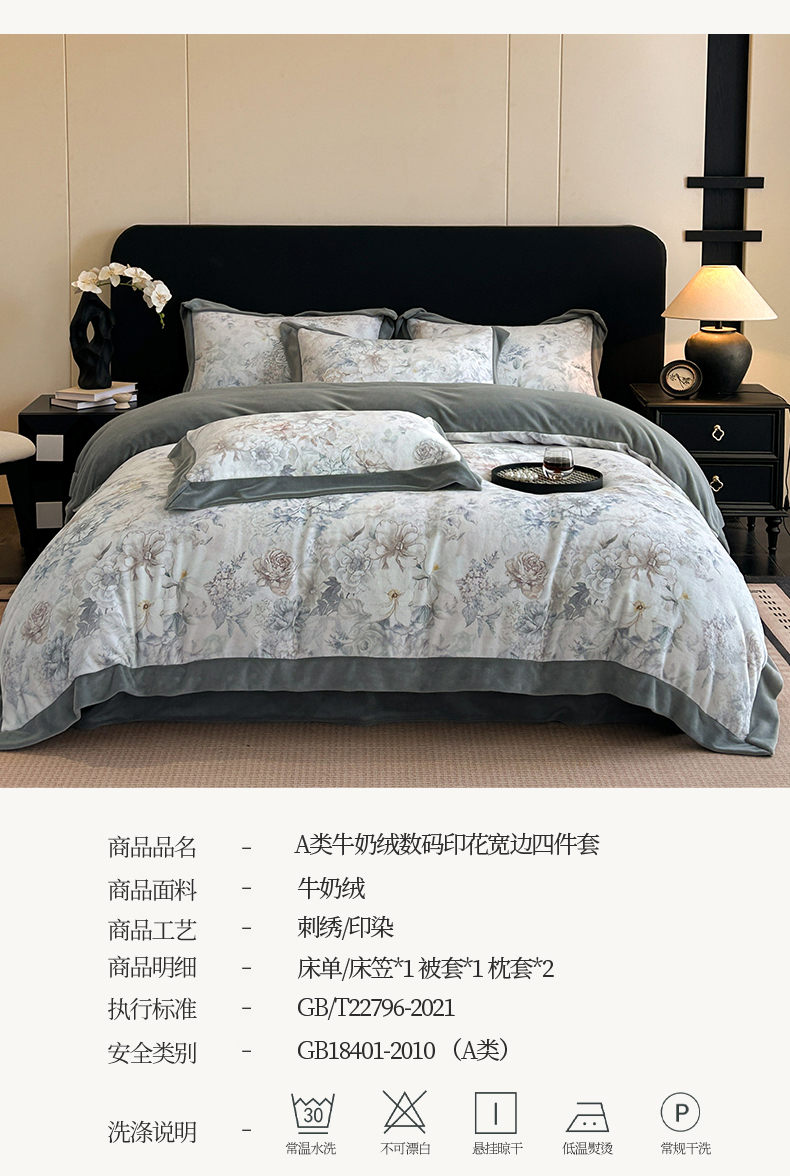 当前位置: 91家纺网 > 商品网购 > 床品套件 > 四件套 > 牛奶绒四件套 > 眷恋家纺 2025新款加厚牛奶绒法式数码印花宽边四件套 黛希