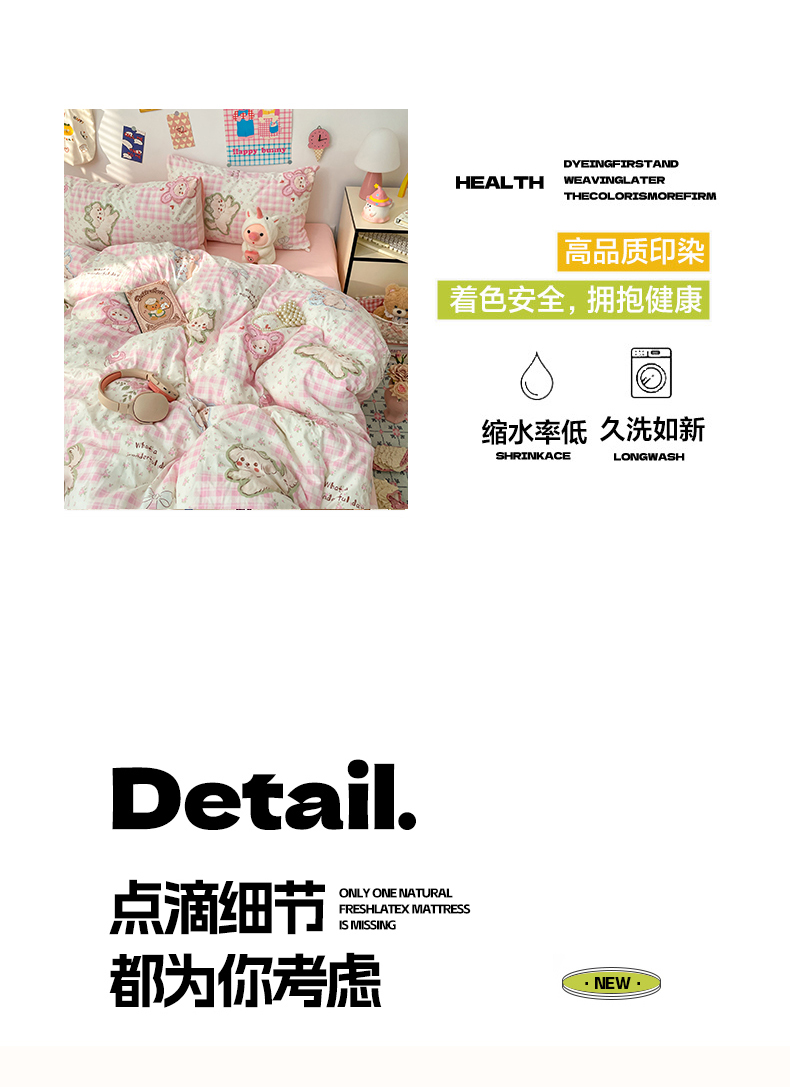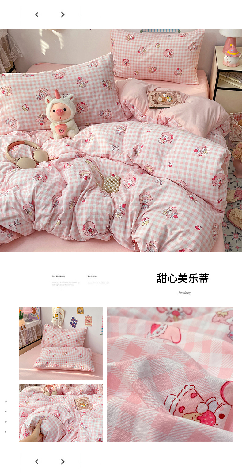 当前位置: 91家纺网 > 商品网购 > 床品套件 > 四件套 > 水洗棉四件套 > 梦卓家纺 2025新款超柔水洗棉印花双层纱卡通小清新四件套 草莓凯蒂
