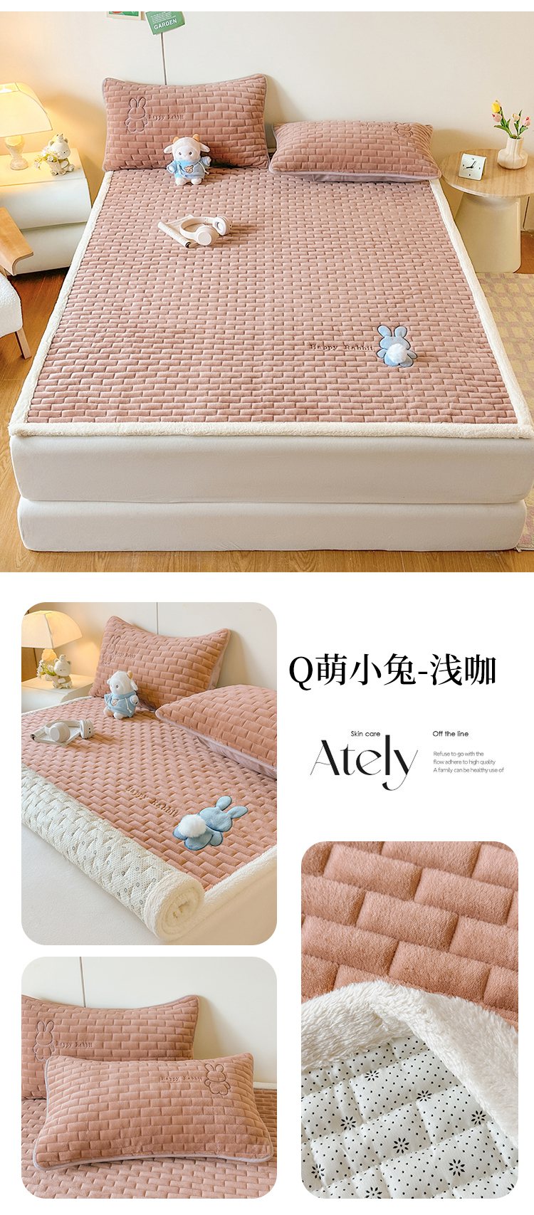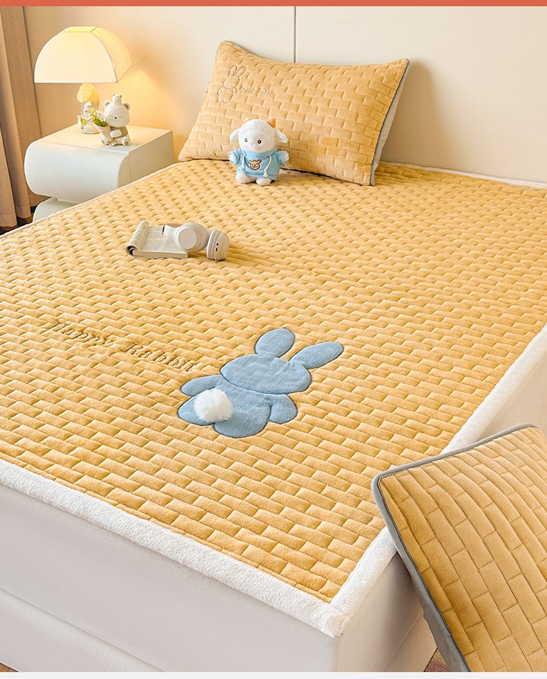 当前位置: 91家纺网 > 商品网购 > 床垫/床褥 > 普通床垫 > 恋绒家纺 2025新款贴布绣牛奶绒床褥床垫 Q萌小兔-米白