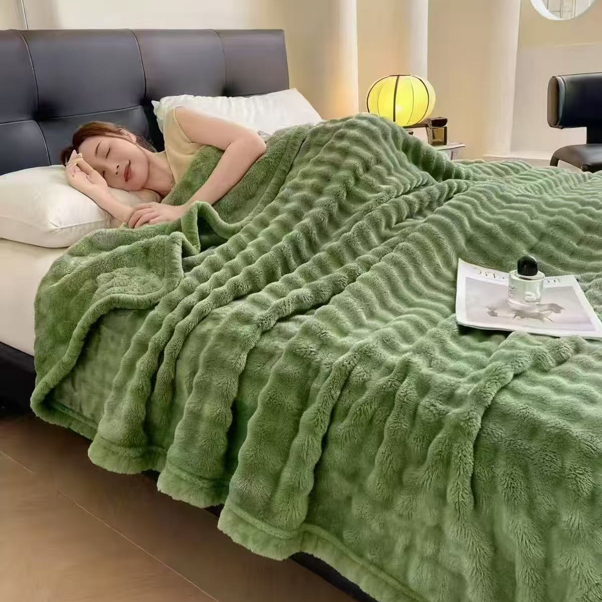 (总)华誉 2025新款仿兔毛泡泡毛毯牛奶绒毛毯午睡毯