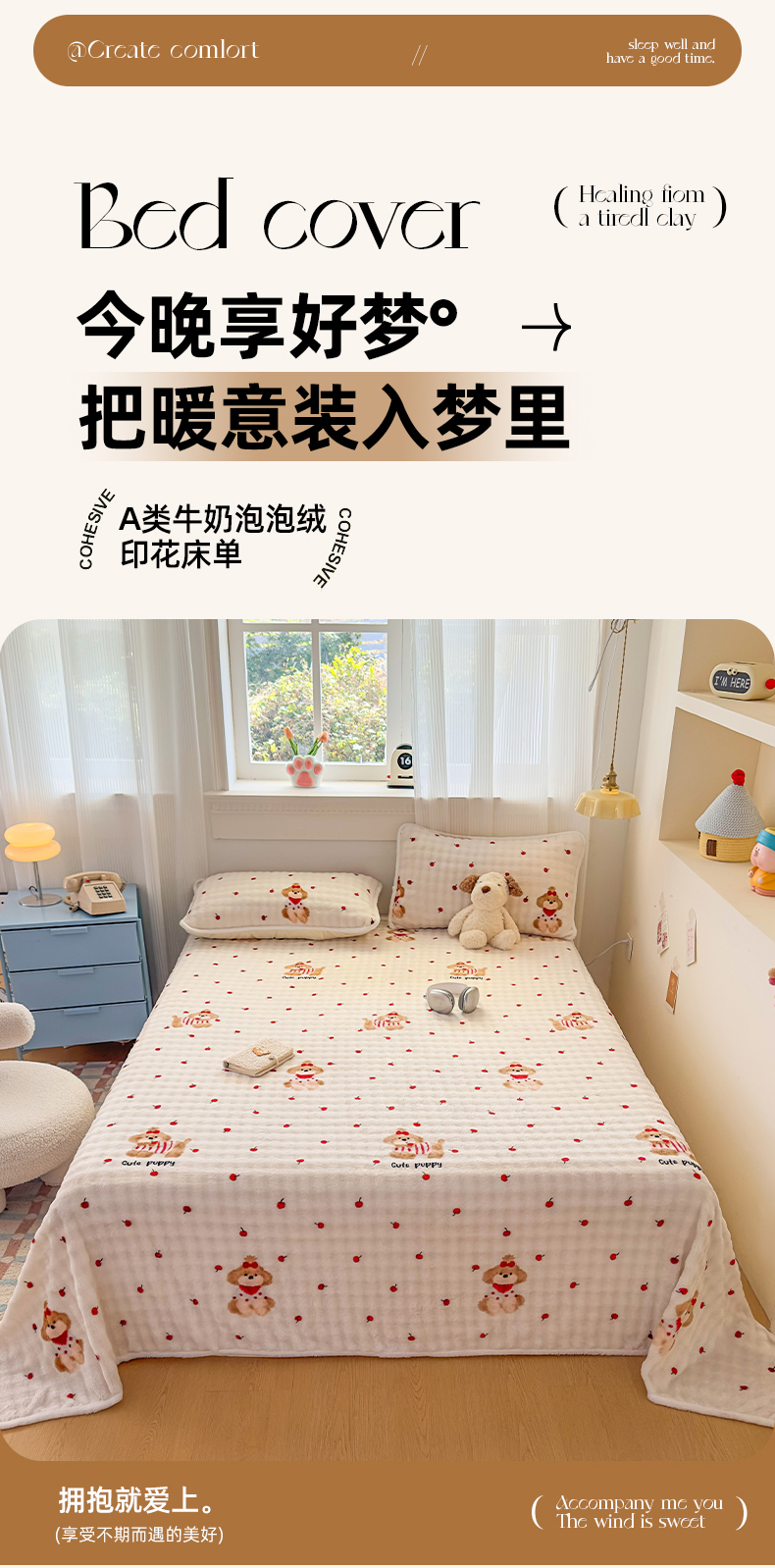 • 91家纺网 家纺一手货源 找家纺 丝芙妮家居(原乐视家纺) 2025新款A类牛奶泡泡绒印花单品床单 假日小狗