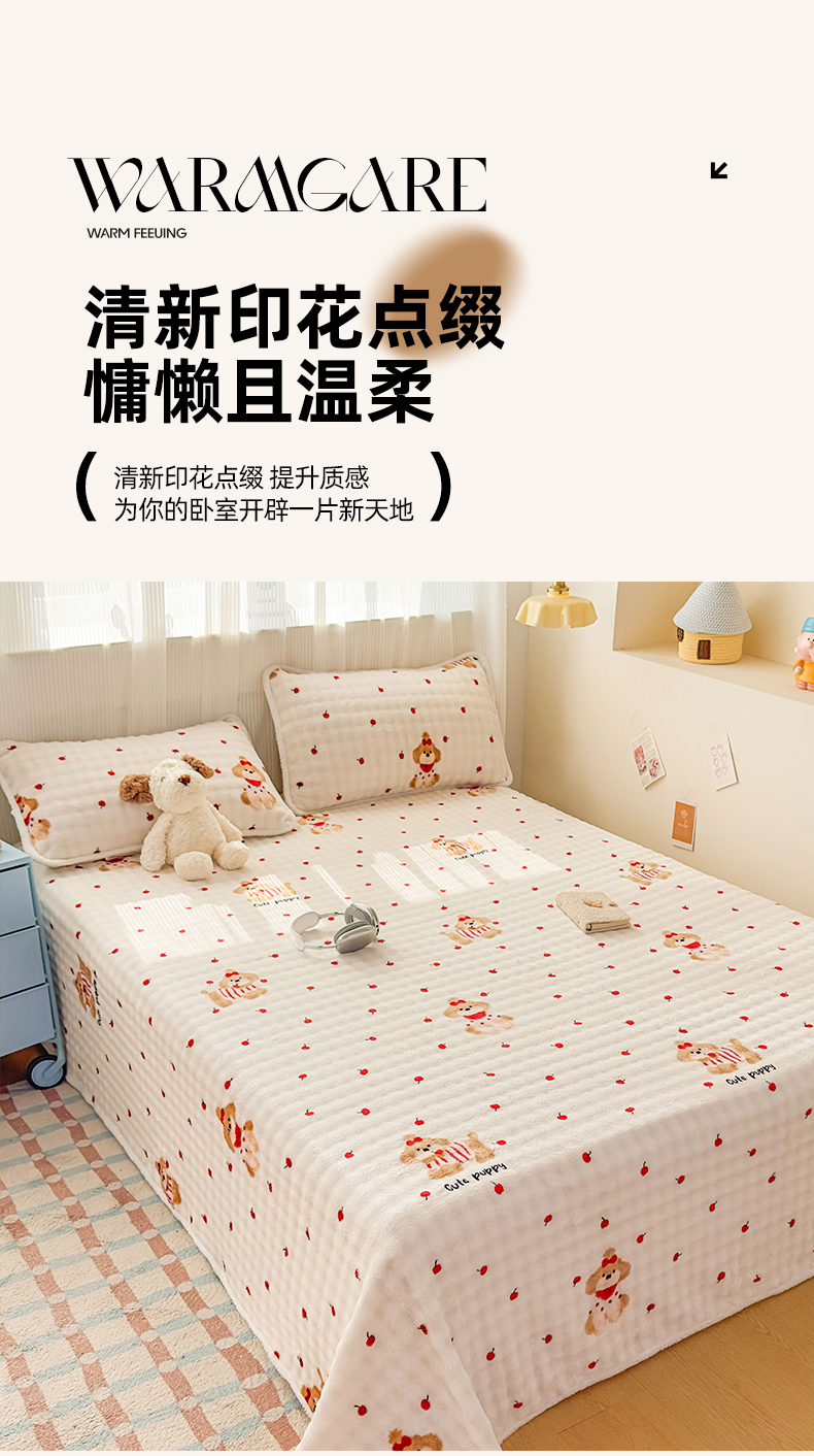 丝芙妮家居(原乐视家纺) 2025新款A类牛奶泡泡绒印花单品床单 假日小狗