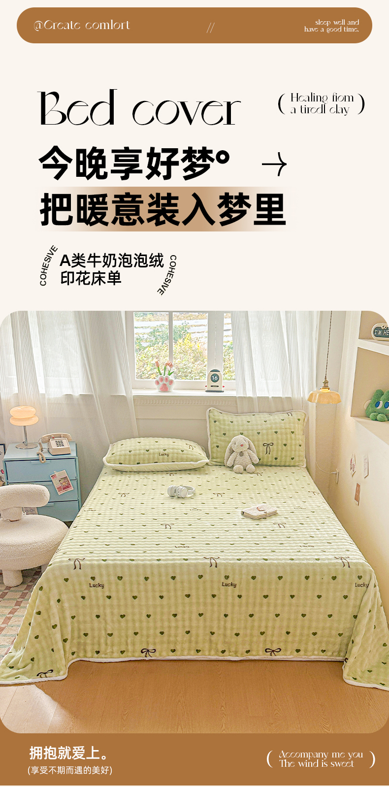 (总)丝芙妮家居(原乐视家纺) 2025新款A类牛奶泡泡绒印花单品床单,草莓小猫,春日樱桃,纯真小熊,狗狗乐园,假日小狗,快乐小熊猫,漫花香,泡芙KT,轻舞梦蝶,甜蜜黛露,甜糯凯蒂,晚安宝贝,西高地,心愿蝴蝶-咖,心愿蝴蝶-绿,夜幕星辰,慵懒KT,遇见花海,紫色蝴蝶结,可爱颂