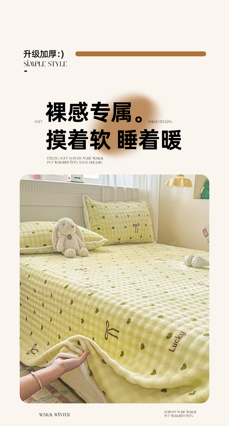 丝芙妮家居(原乐视家纺) 2025新款A类牛奶泡泡绒印花单品床单 心愿蝴蝶-绿