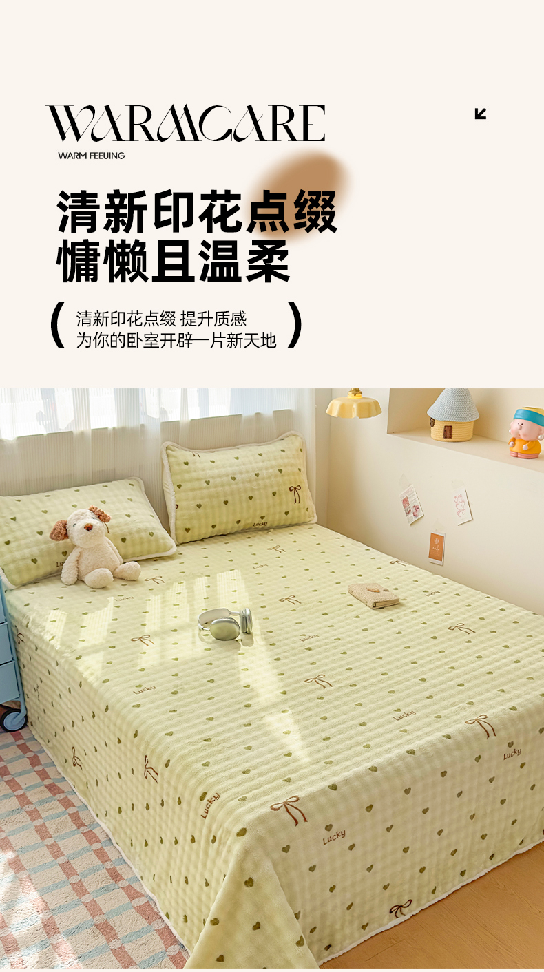 • 91家纺网 家纺一手货源 找家纺 丝芙妮家居(原乐视家纺) 2025新款A类牛奶泡泡绒印花单品床单 心愿蝴蝶-绿