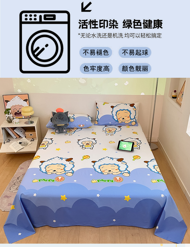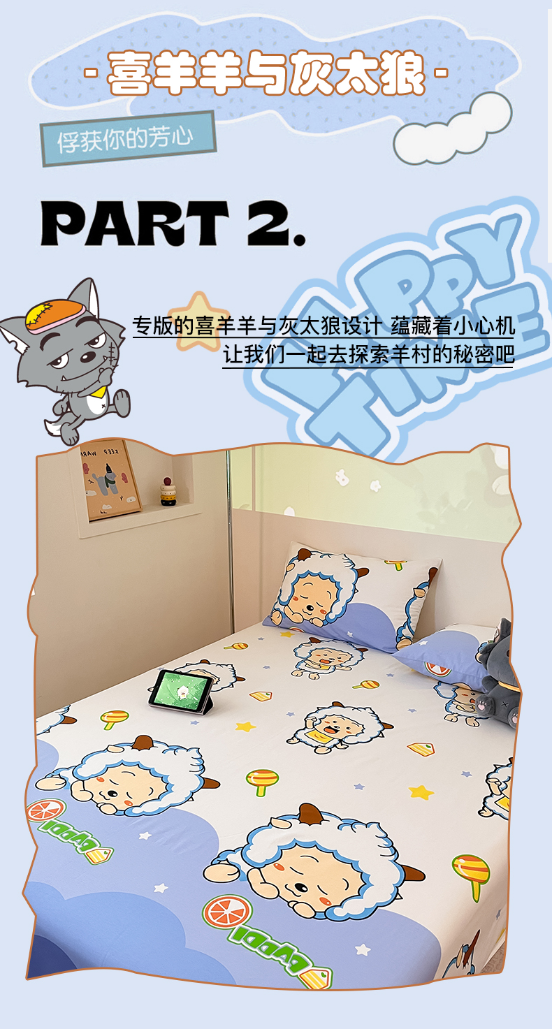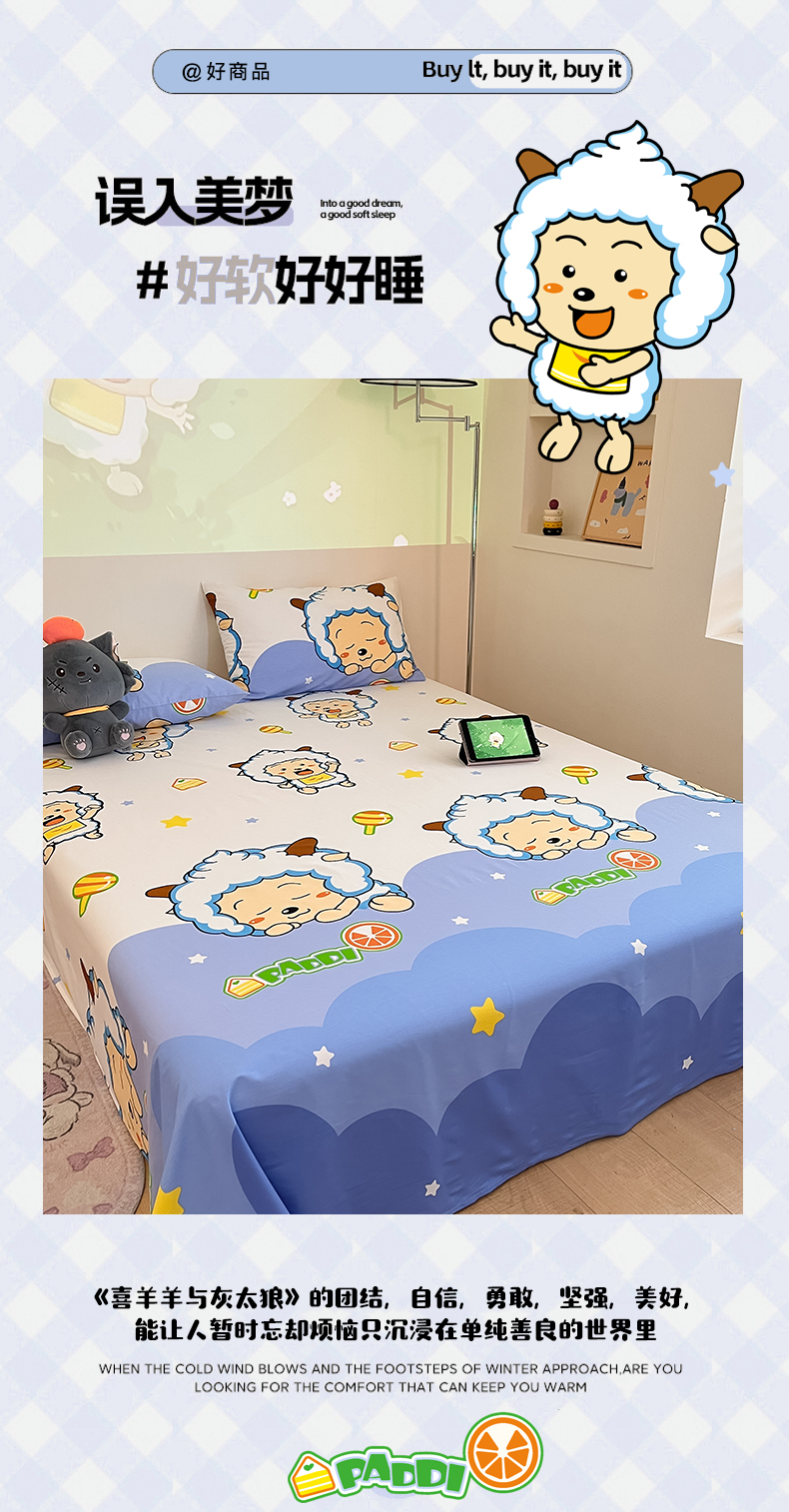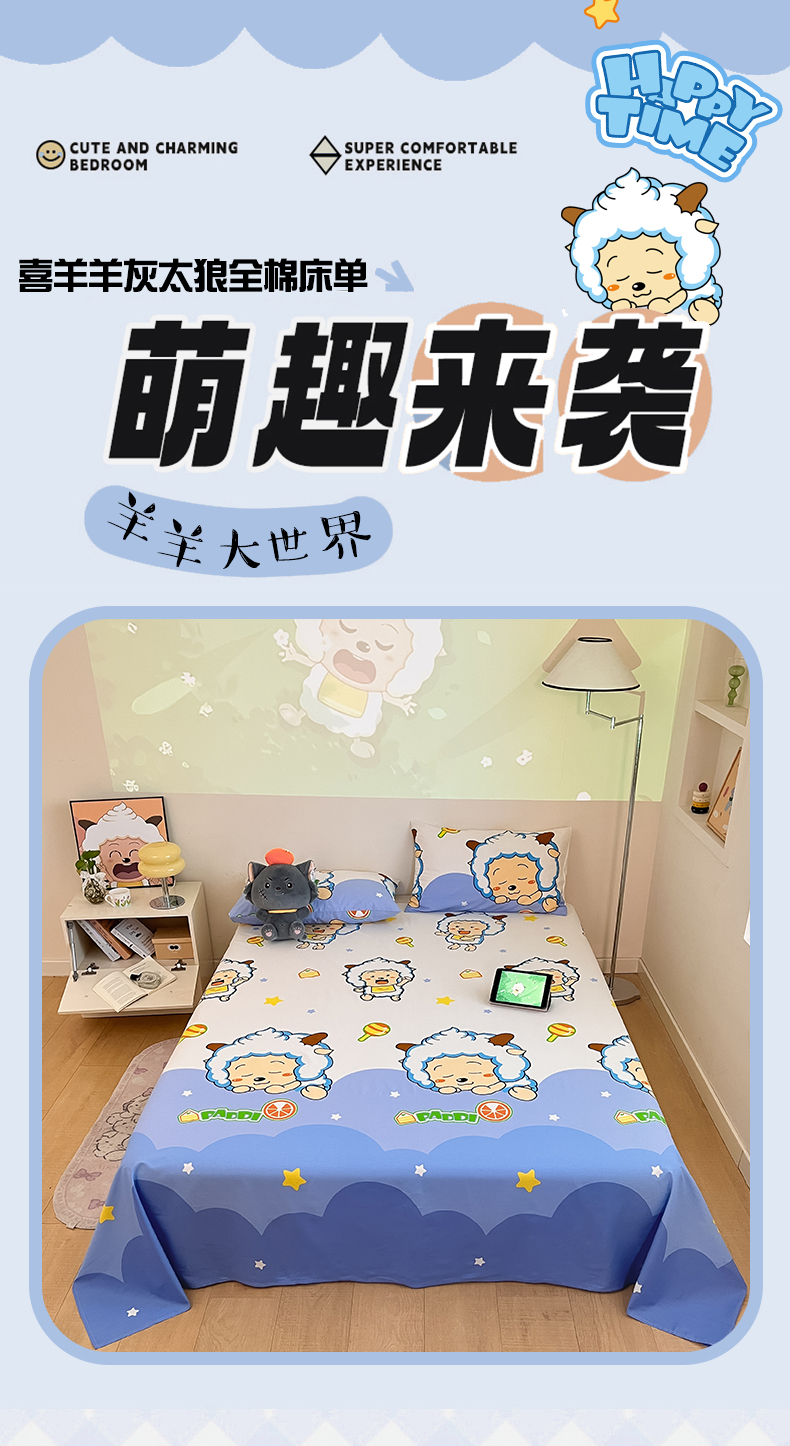 商品名称:金鑫汇家纺 2025新款喜羊羊与灰太狼全棉单品床单 懒懒大王