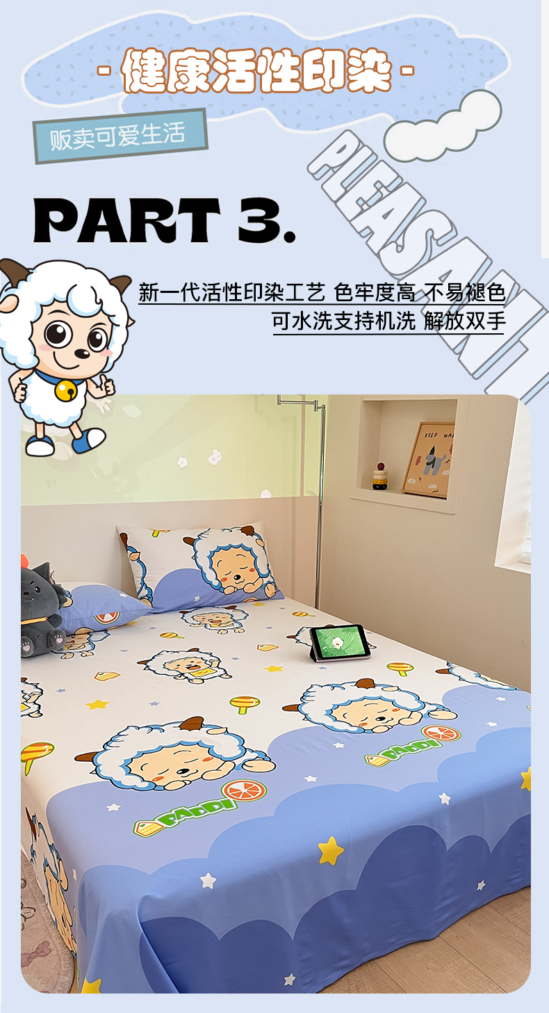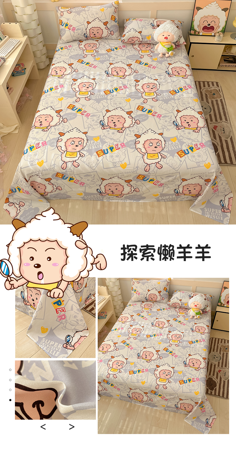 金鑫汇家纺 2025新款喜羊羊与灰太狼全棉单品床单 懒懒大王
