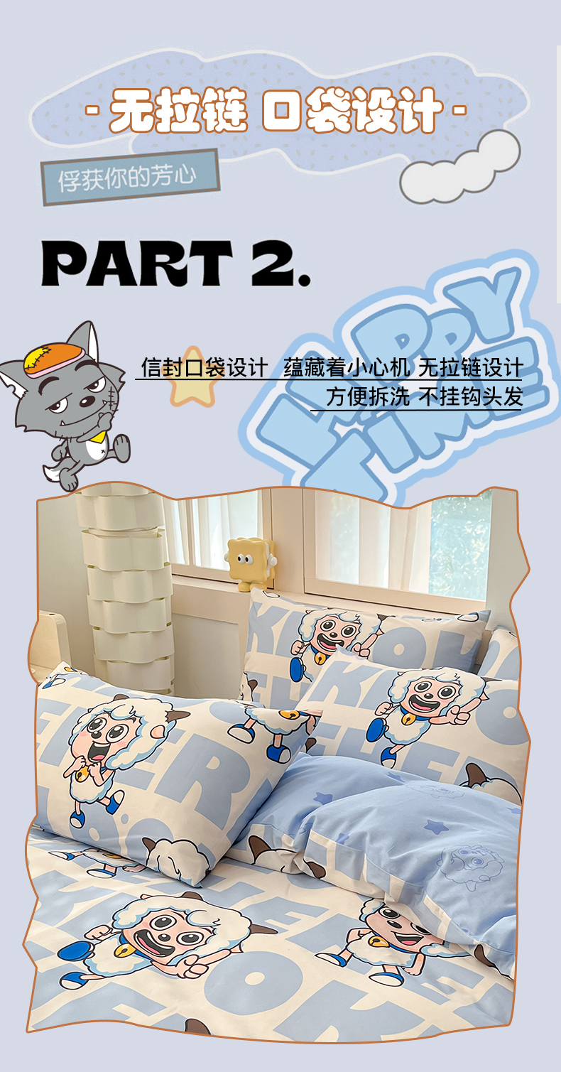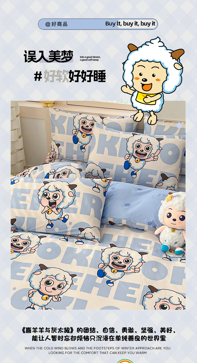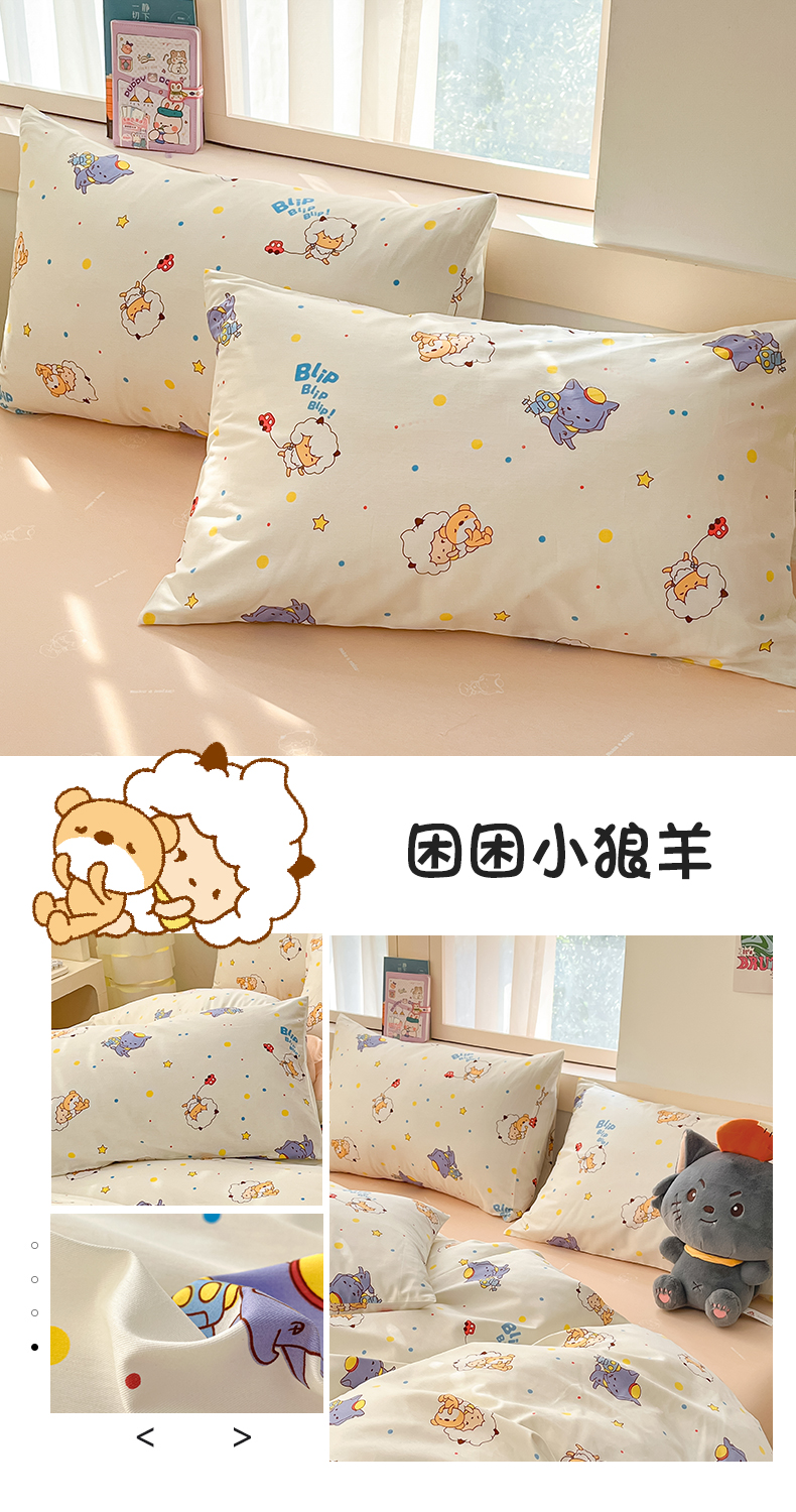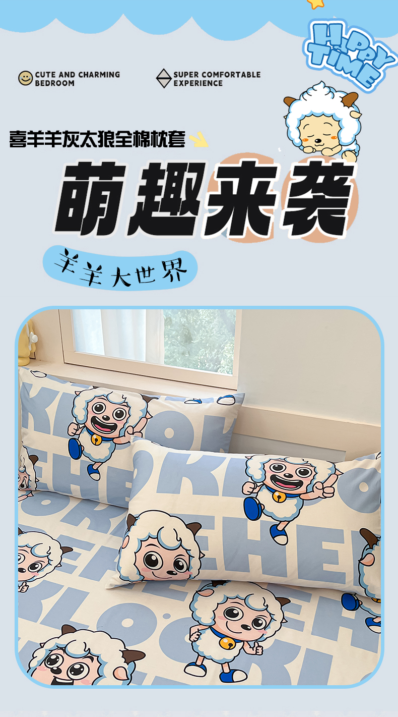 商品名称:金鑫汇家纺 2025新款喜羊羊与灰太狼全棉单品枕套 字母喜羊羊