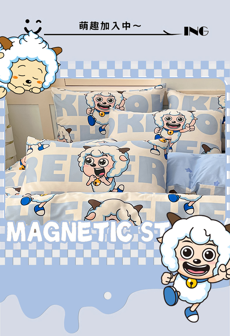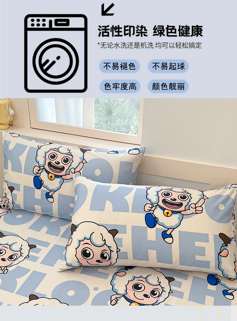 金鑫汇家纺 2025新款喜羊羊与灰太狼全棉单品枕套 字母喜羊羊