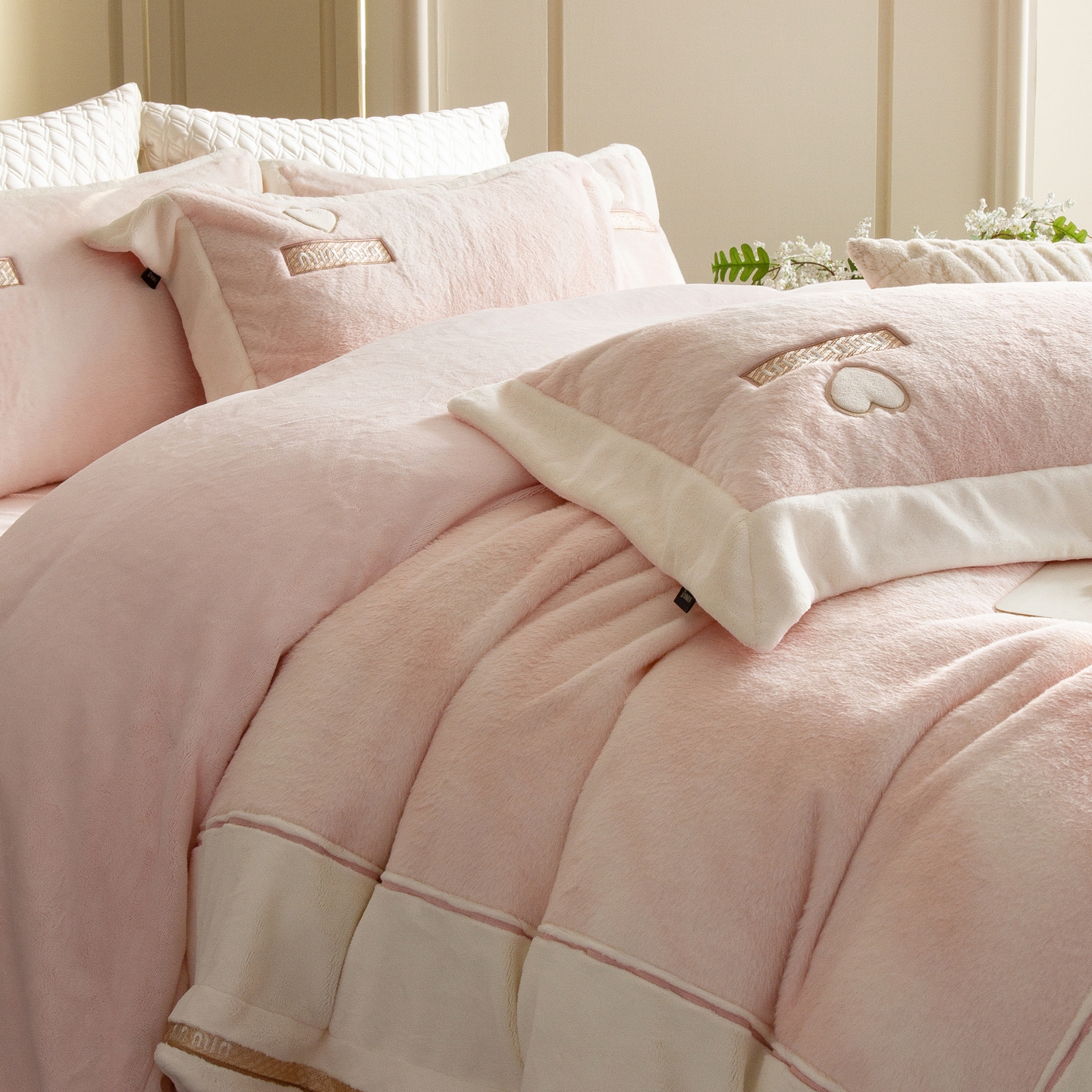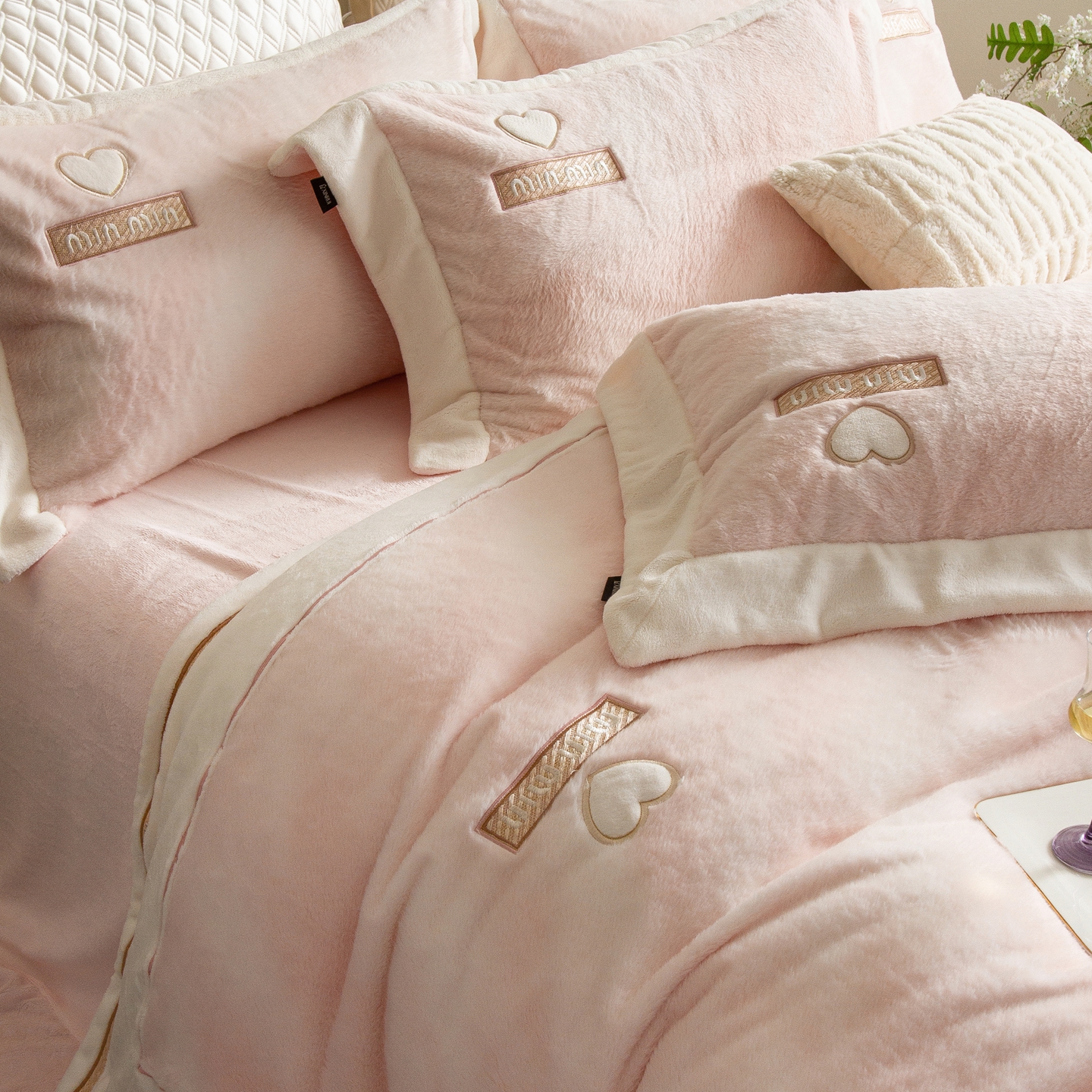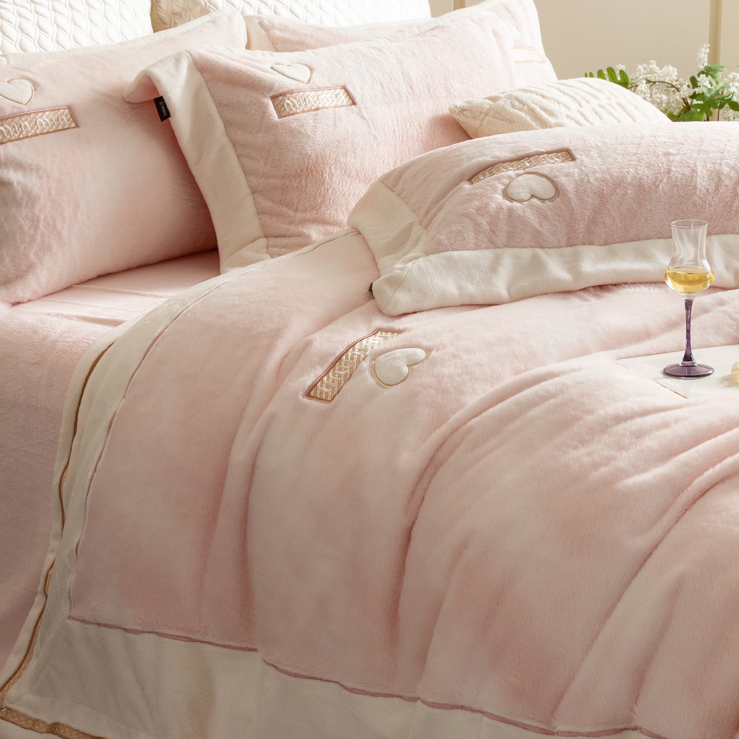 (总)馨蕊家居 2025新款意大利进口高精密刺绣拼角工艺秋冬法式高奢雪貂绒系列-绒雪芙 会员-10【券后控价358/378】,绒雪芙-奶咖,绒雪芙-蔷薇粉,绒雪芙-婉若紫,绒雪芙-月光白