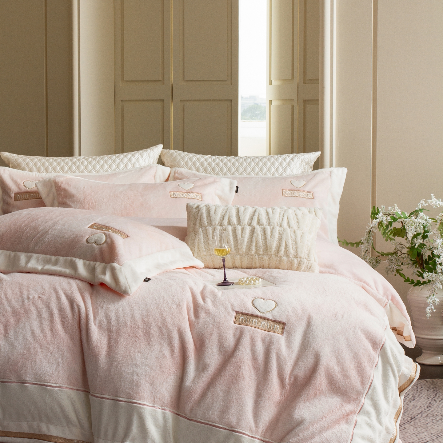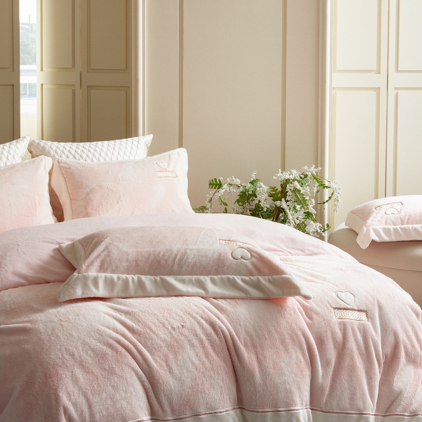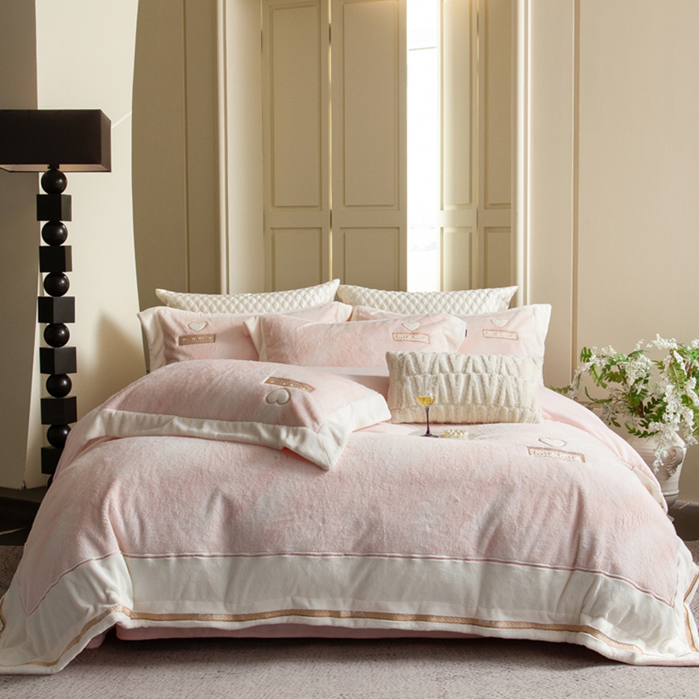 (总)馨蕊家居 2025新款意大利进口高精密刺绣拼角工艺秋冬法式高奢雪貂绒系列-绒雪芙 会员-10【券后控价358/378】,绒雪芙-奶咖,绒雪芙-蔷薇粉,绒雪芙-婉若紫,绒雪芙-月光白