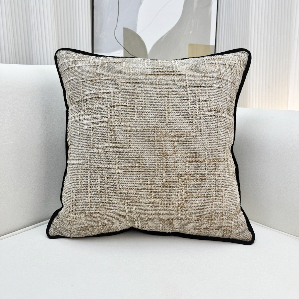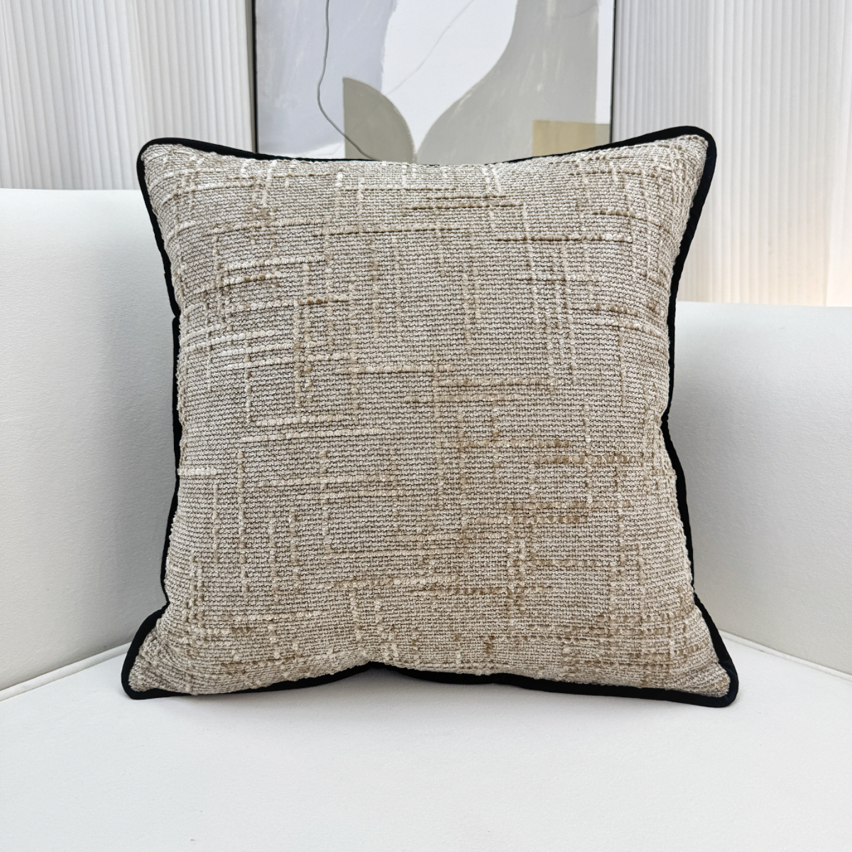 爱家居 2025新款纯色加厚雪尼尔纹理抱枕轻奢家居靠垫沙发床头靠包枕可拆洗 轻奢雪尼尔—卡其色