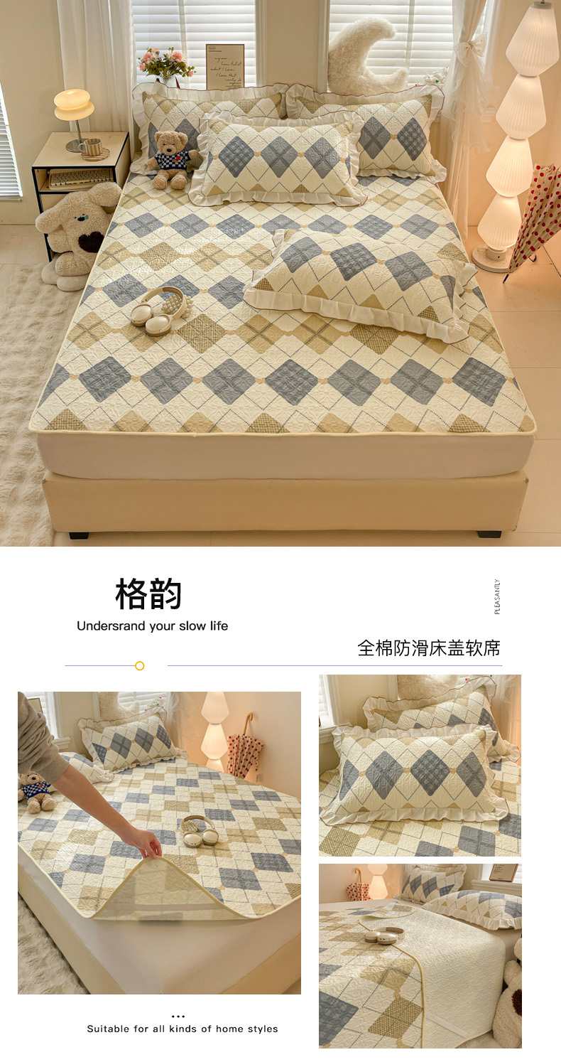 羽爱家纺 2025新款舒适可定制全棉防滑床盖软席格韵