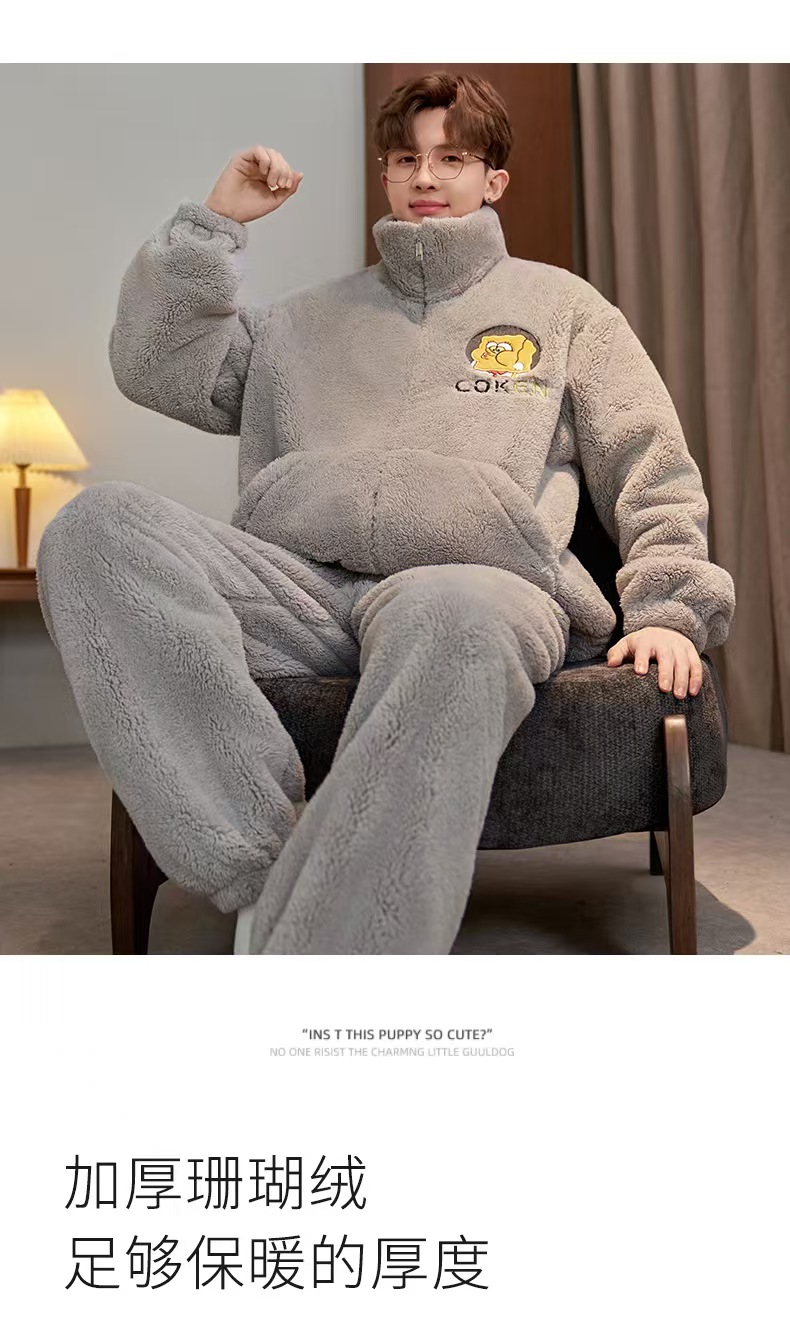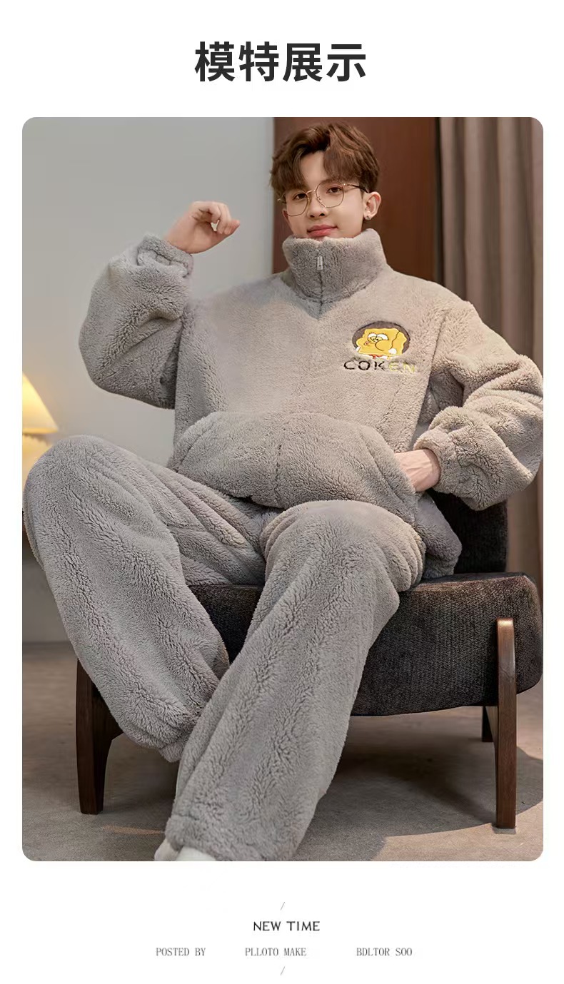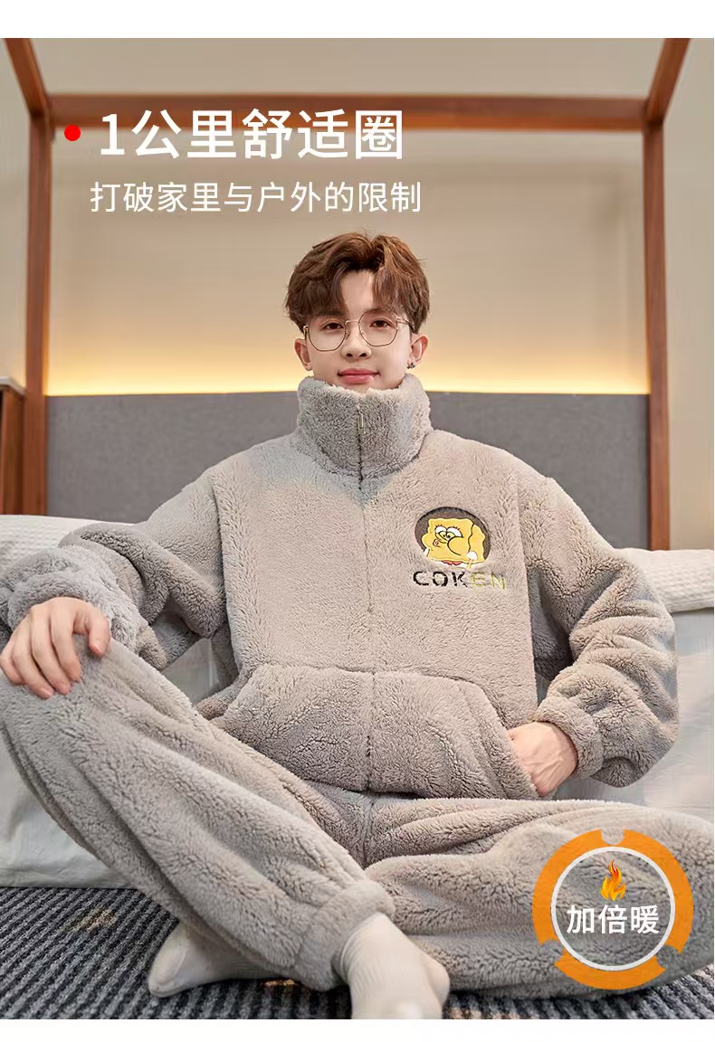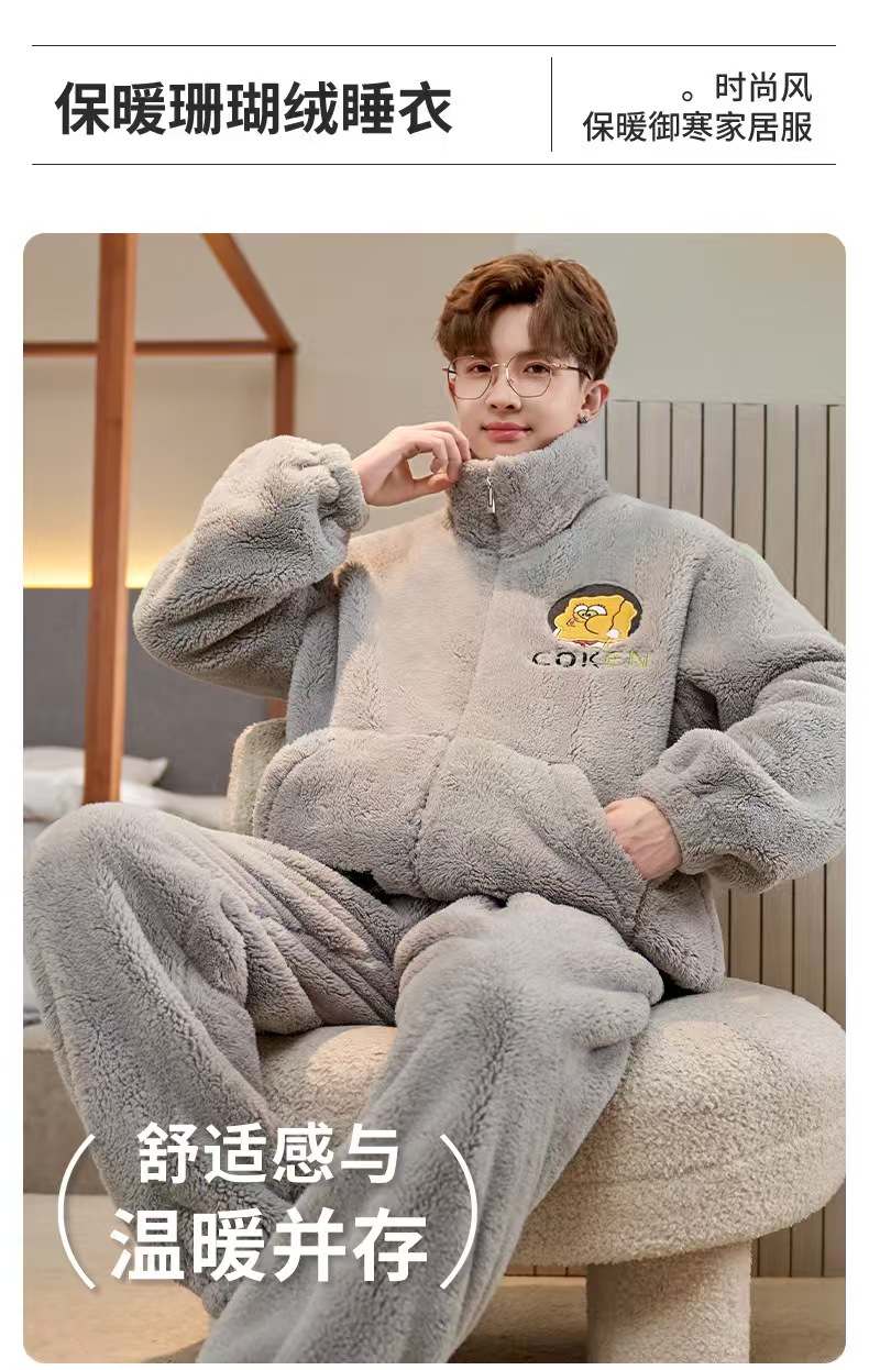 商品名称:(总)洛兰沙家居馆 2025新款珊瑚绒睡衣男士秋冬季加绒加厚冬天青少年大码家居服套装