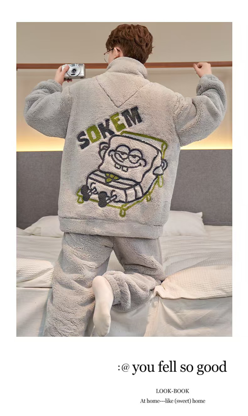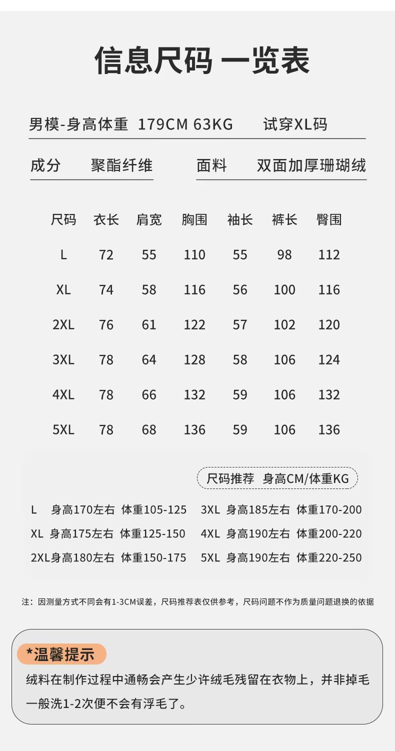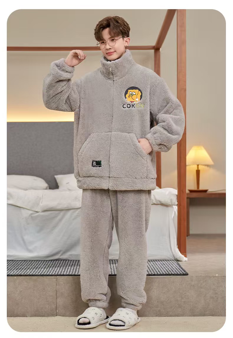商品名称:(总)洛兰沙家居馆 2025新款珊瑚绒睡衣男士秋冬季加绒加厚冬天青少年大码家居服套装