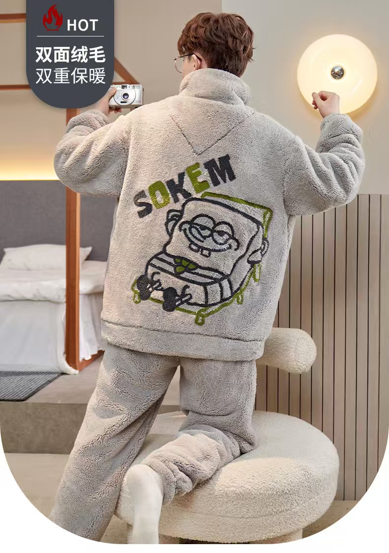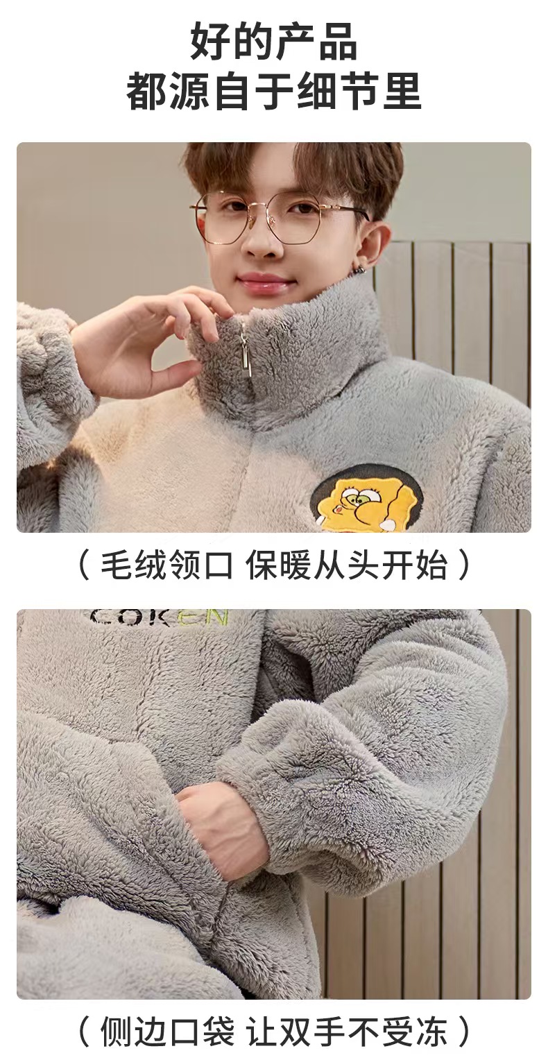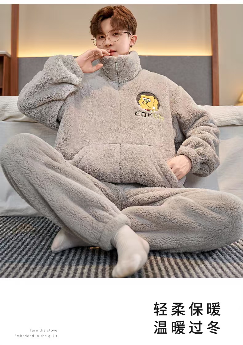 (总)洛兰沙家居馆 2025新款现货男士睡衣冬季珊瑚绒拉链三层夹棉加厚加绒套装秋冬款,1,4,3,4,5,6,7