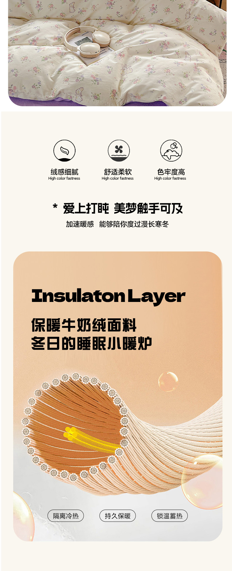 梦洋家纺 2025新款全棉牛奶绒高克重保暖被套 围裙小熊