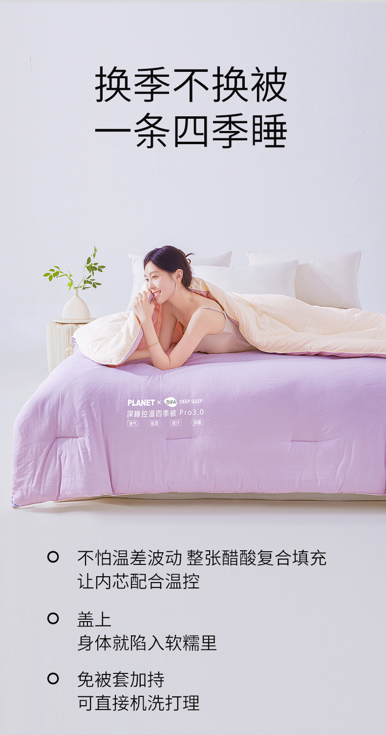 • 91家纺网 家纺一手货源 找家纺 咏绒家纺工厂店 2025新款亚朵同款星球酒店深睡控温四季被.Pro3.0春秋被冬被子母被 雾凇紫粉