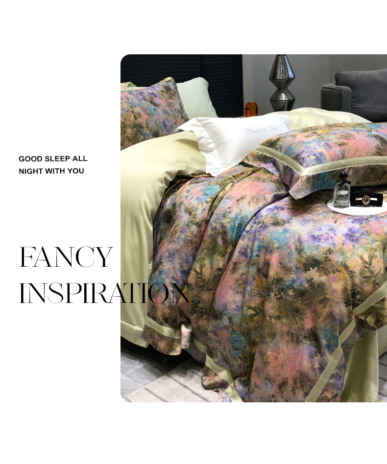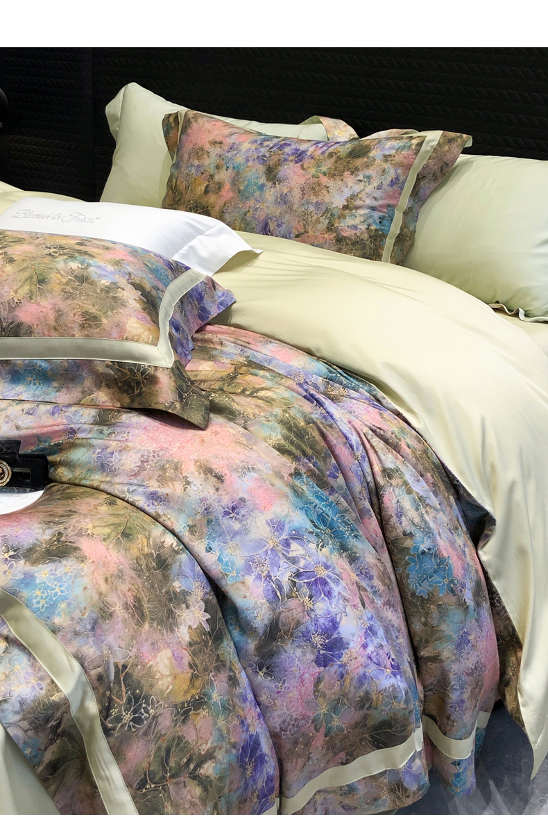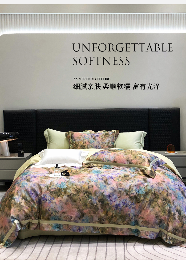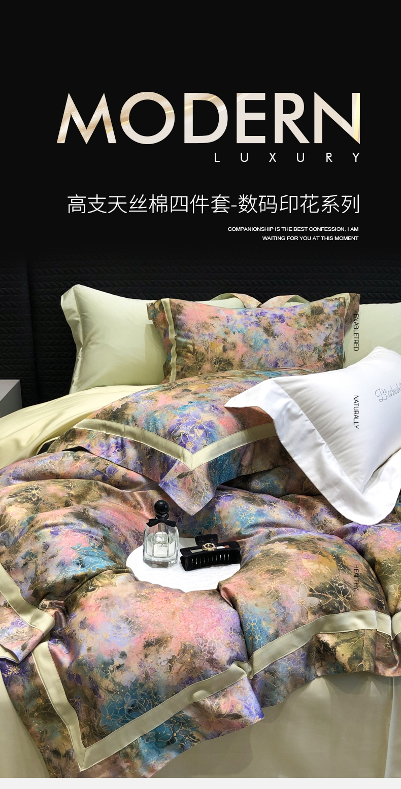 黑白森林2024款 50X50S高支天丝棉数码印花四件套天丝全棉,格伦黄,格伦绿,若瑶灰,羽笛蓝