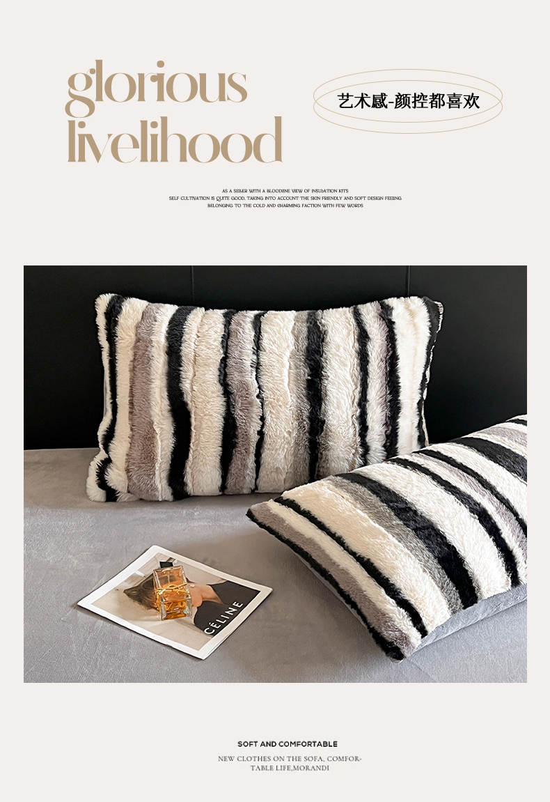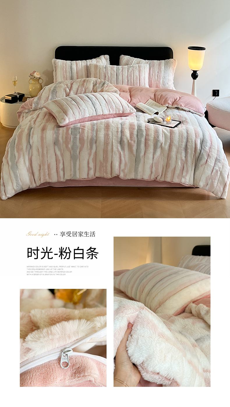 (总)玖琳家纺 2025新款双面高端高克重兔绒毛牛奶绒轻奢款四件套- 时光系列,粉白条,黑白条,灰白条