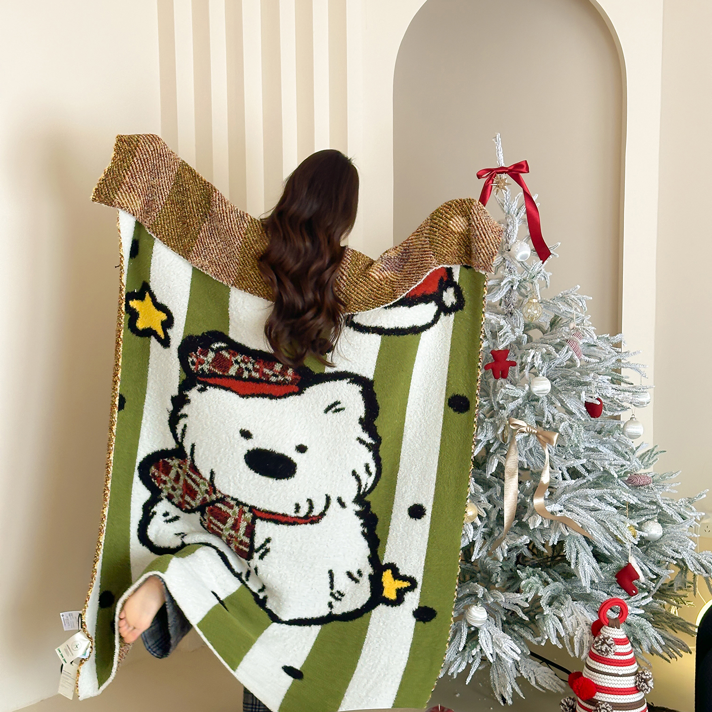 觅糖家纺 2025新款圣诞限定暖绒盖毯 星愿熊仔
